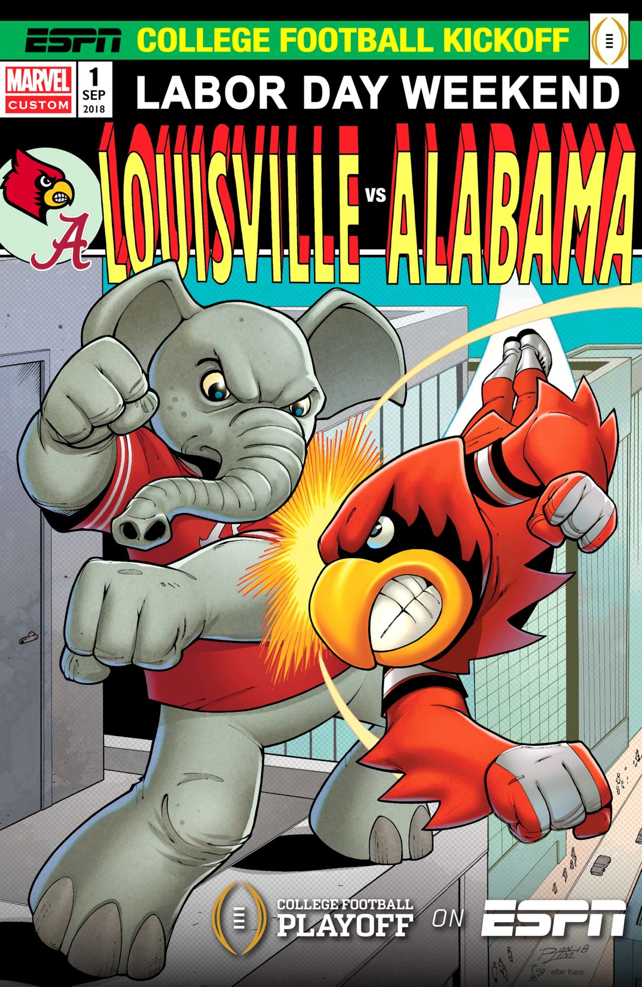 Louisville vs. Alabama on Sept. 1, 2018. Homage to Invincible Iron Man #66 by Gil Kane, recreated by Ron Lim, Roberto Poggi, Carlos Lopez