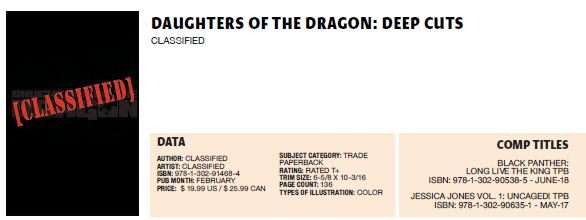 But there's plenty more joining them. We get more dates for the collections of the upcoming Iron Fist and Daughters of the Dragon digital-first series when they go to print, Classified here just like Cloak and Dagger, Jessica Jones and Luke Cage before it.