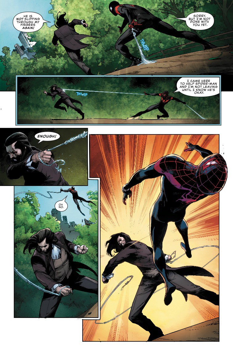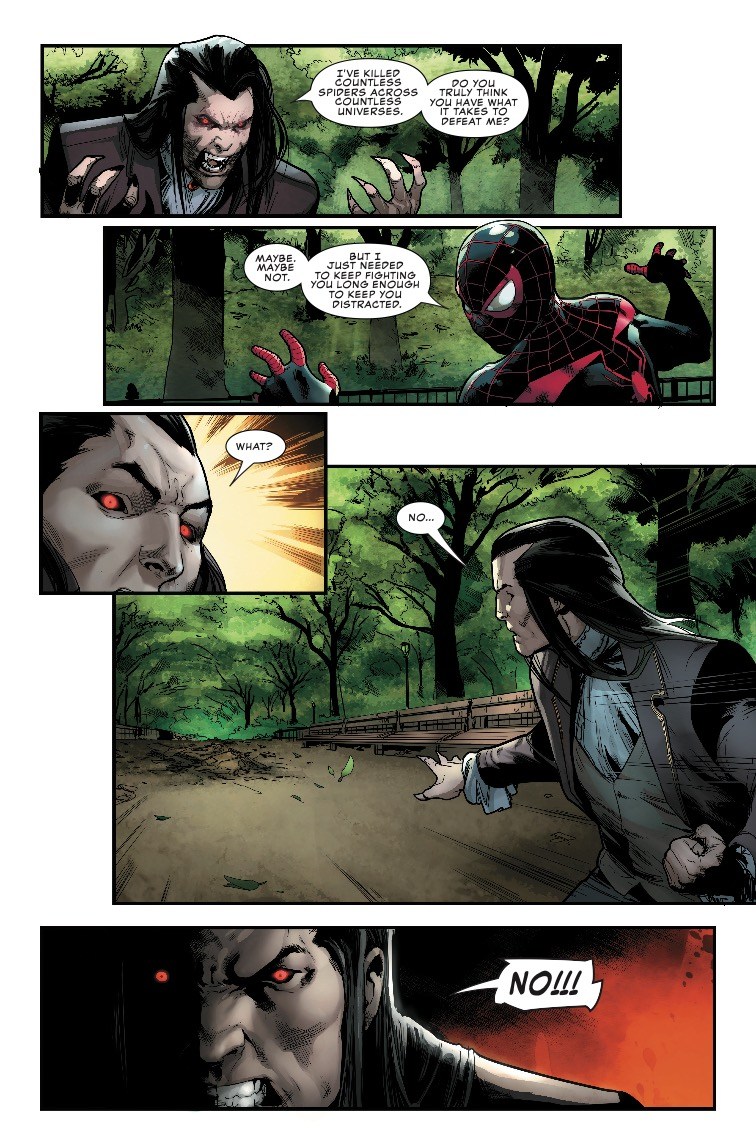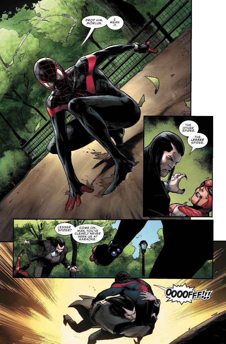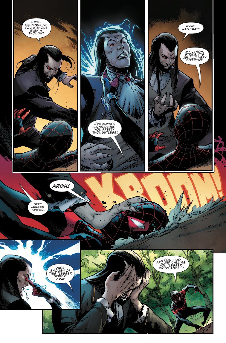 Ouch! That's got to hurt! But like a true Spider-Man, Miles has a good comeback waiting for the well-dressed vampire.