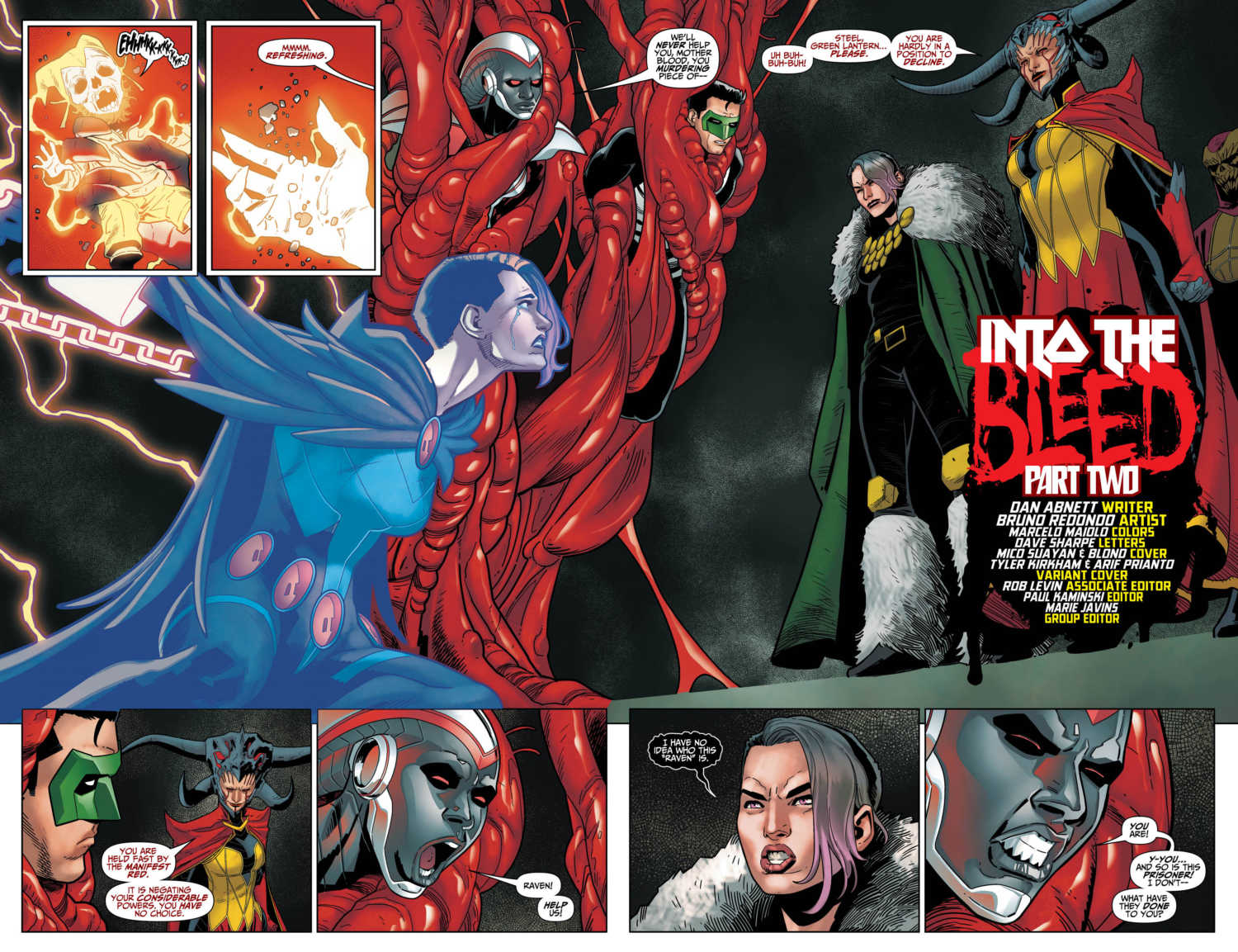 "INTO THE BLEED" part two! The Titans are trapped on the perilous Unearth, far from home and standing in the face of not one but two evil armies. But hey, no sweat, right? Then, things take a turn for the worse when the commander of the opposition turns out to be one of their own, and the Titans will need to make some hard choices on the path to victory. Plus, what is Mother Blood's connection to the Totality?
