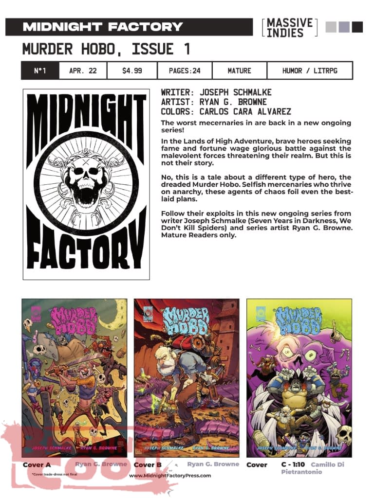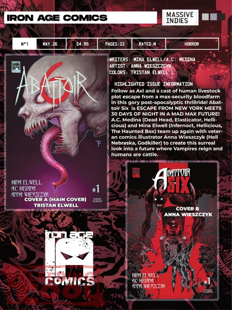 As well as Antarctic Press, Heavy Metal, Red 5 Comics, Invader Comics, Warrant and Hoffman, a number of other publishers are listed in Massive Indies' April 2026 solicits and solicitations, including AMP Comics, Altruist Comics, Midnight Factory, Part-Time Comics, SHP Comics and Insight Editions, as well as Massive Publishing themselves… and launches for Murder Hobo and Abattoir Six.