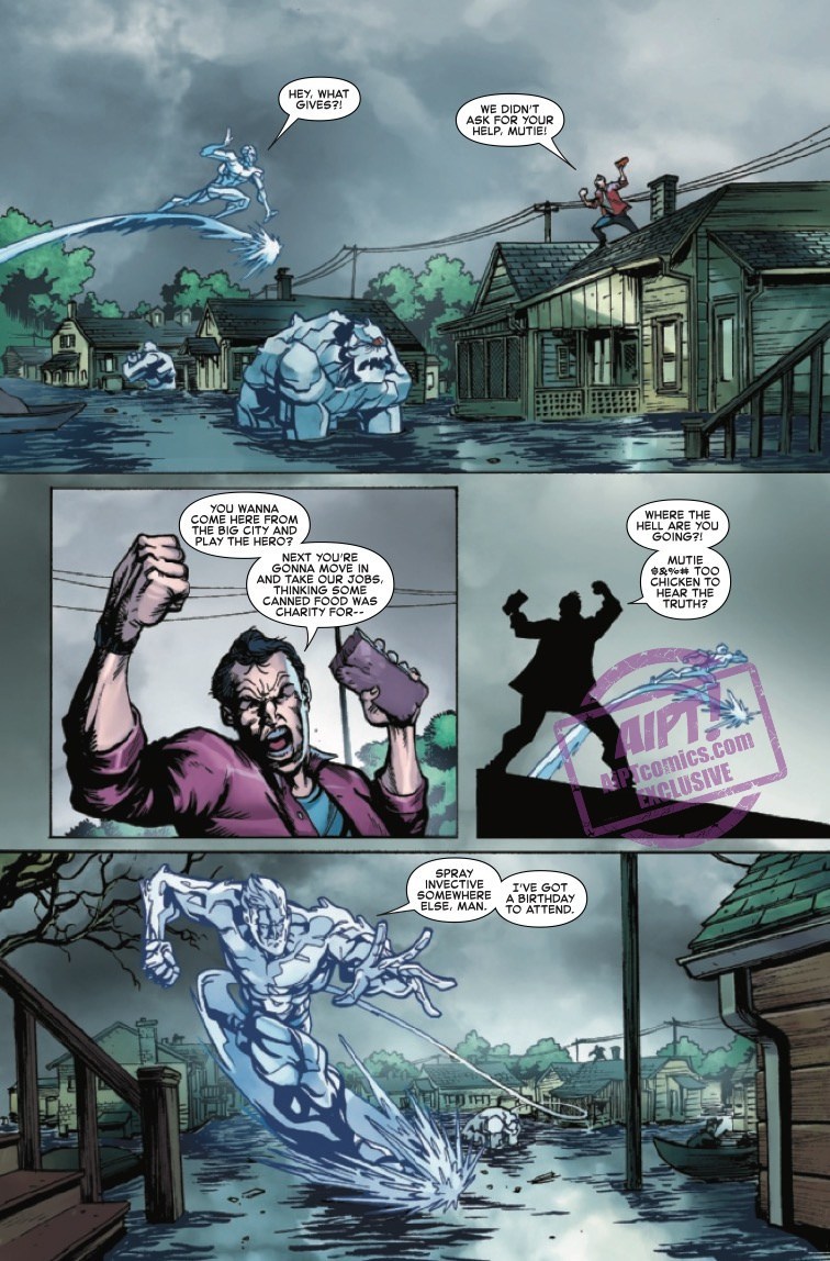 It all begins in this preview of next week's issue, which sees the titular Iceman helping out with some disaster relief. Surely, that's something everyone can get behind, right? Well, not this guy…