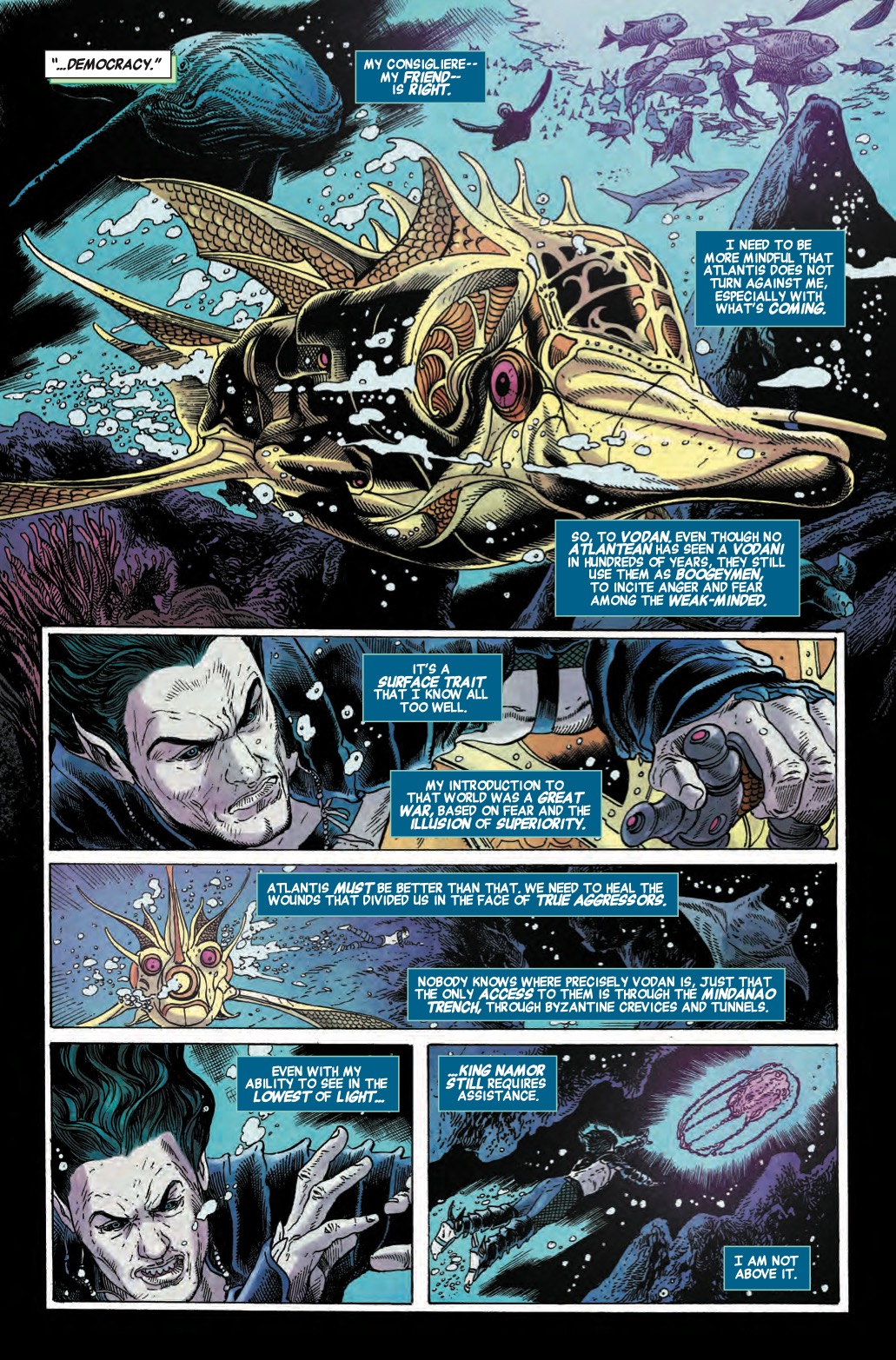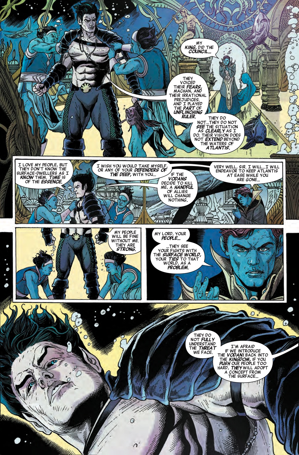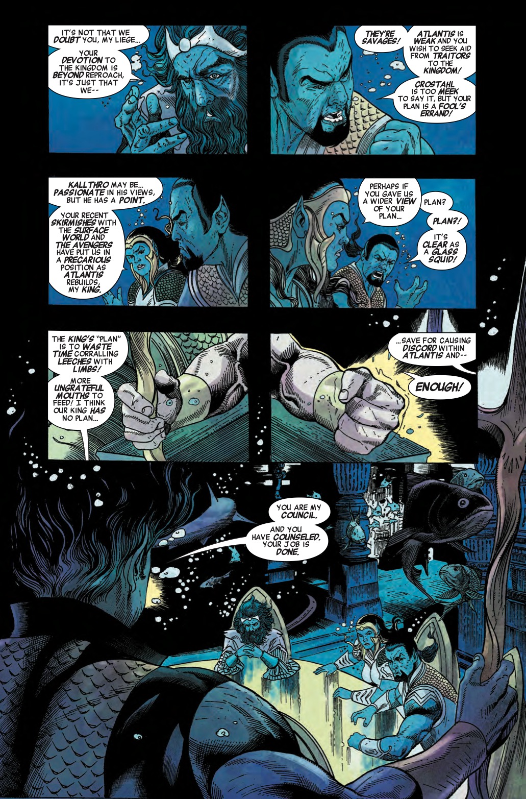 But regardless of their objections, Namor intends to go through with his plans anyway, even while privately accusing his advisors of taking lessons from the surface world when it comes to scapegoating.