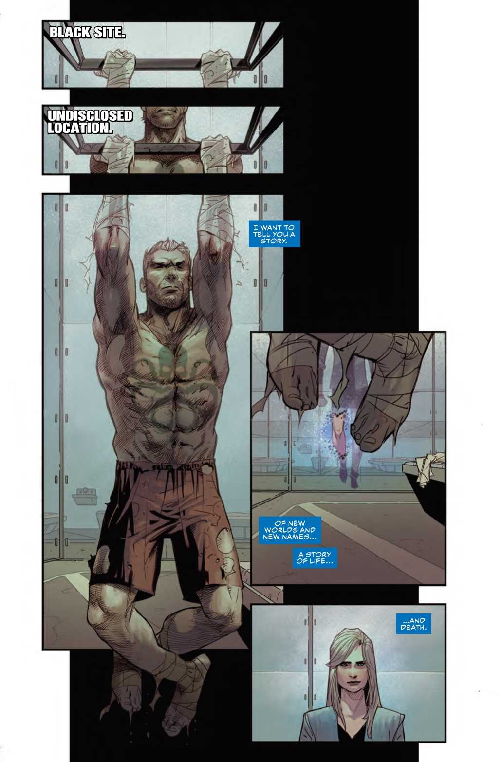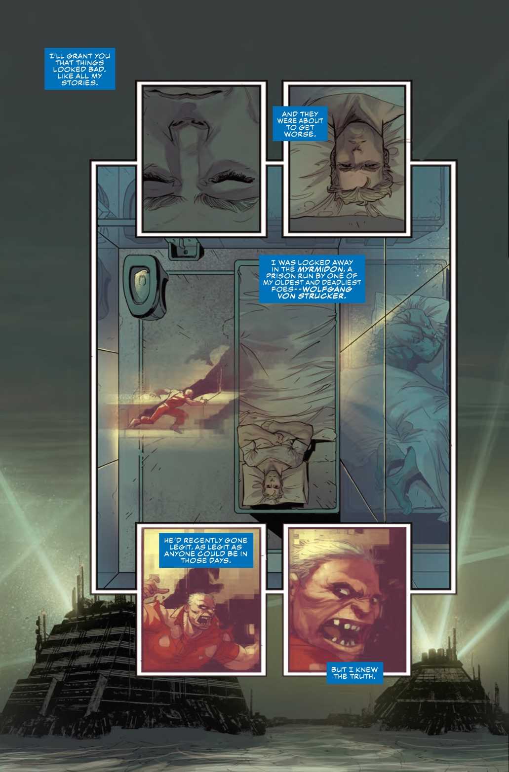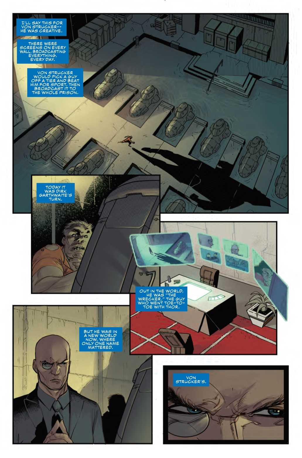 Alexa Lukin has arranged for Nazi Steve to go free, as she tells him while visiting his prison cell. This gives us the opportunity for a sexy two-page spread featuring the fan-favorite anti-hero, as Alexa finds Nazi Steve right in the middle of a sweaty, topless workout. We see it all in this preview of next week's issue…