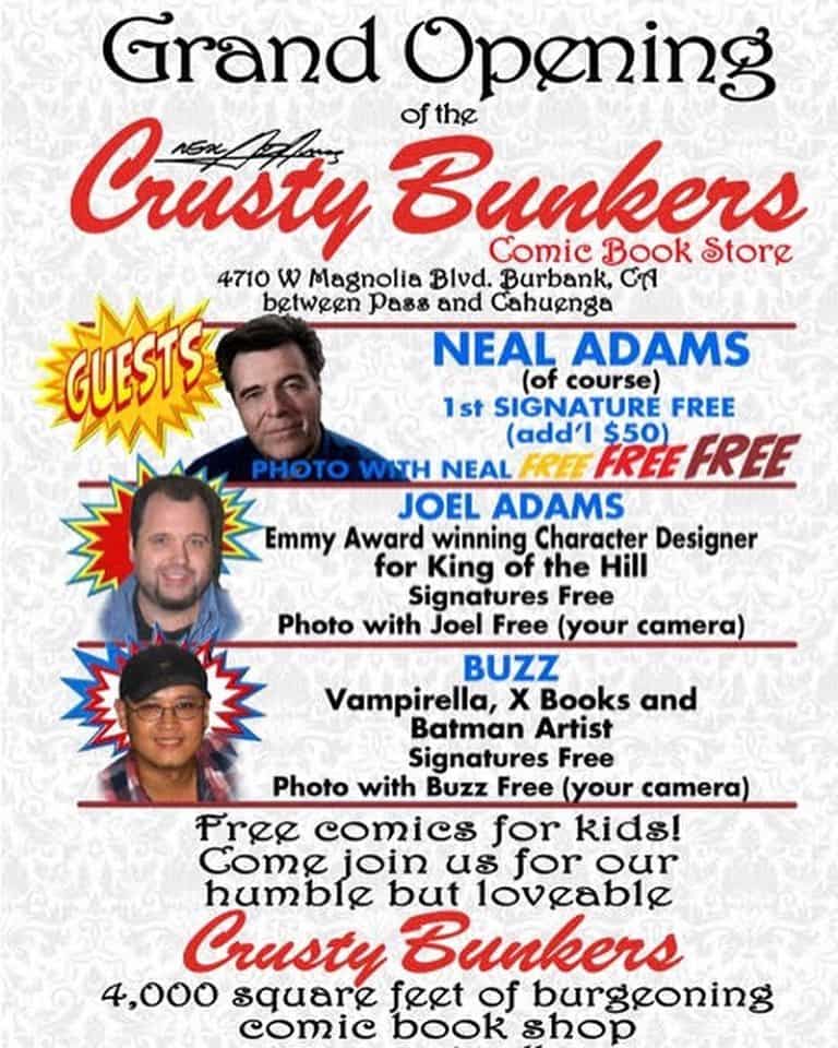 Neal Adams Has A Grand Opening For His Crusty Bunkers Comic Shop in Burbank, Today