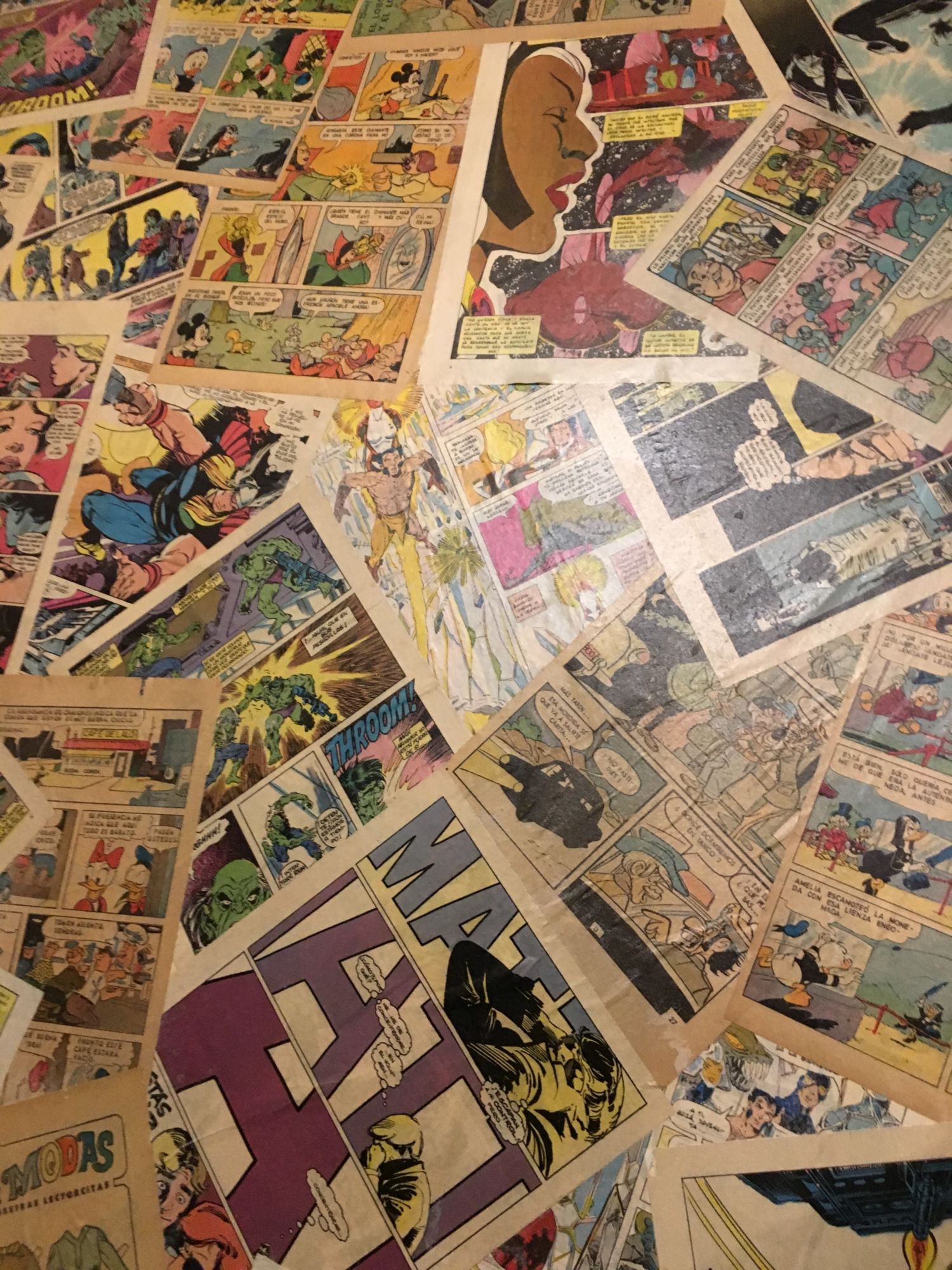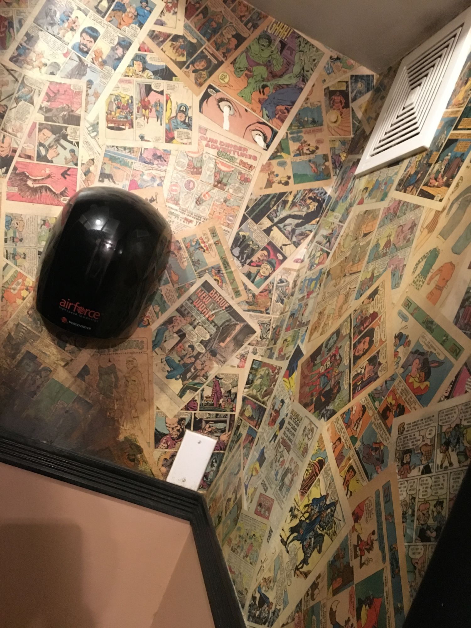 Seriously — actual comics were harmed in the making of this bathroom. I was both delighted and horrified.
