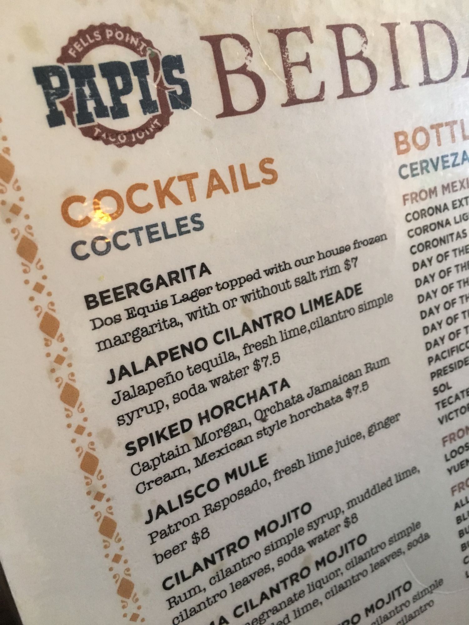Papi's Tacos in Fells Point, Baltimore, is a gem of a place. Right on Aliceanna Street, this casual dining spot is an ideal place to be on a Sunday afternoon, sipping on a margarita and eating a taco. But what if you want both a beer and a margarita? Well, why not try their Beergarita!