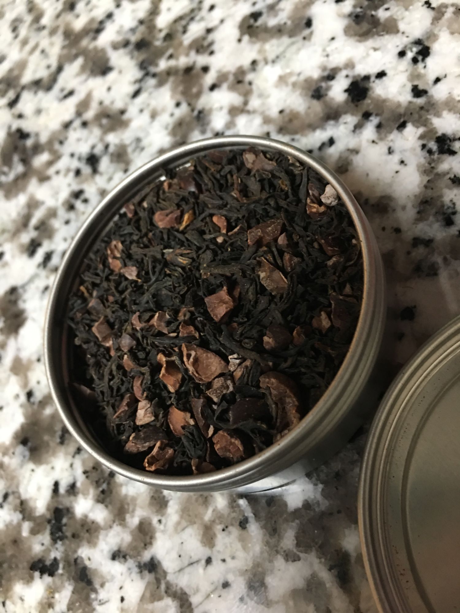 This tea is made with Irish Breakfast black tea and cacao nibs, and smells positively amazing. It's a great tea to wake up with in the morning. It smells like chocolate and has a light chocolatey aftertaste. I will absolutely buy this again!