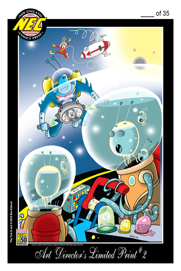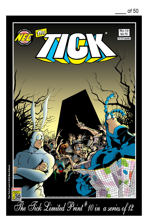 The Art Director's SDCC 2019 Limited Print (Based on Tick & Artie back-up stories) is Full Color, serially numbered and is EXCLUSIVELY available at THE NEC TICK BOOTH! (Limit 2 per person) $5.99