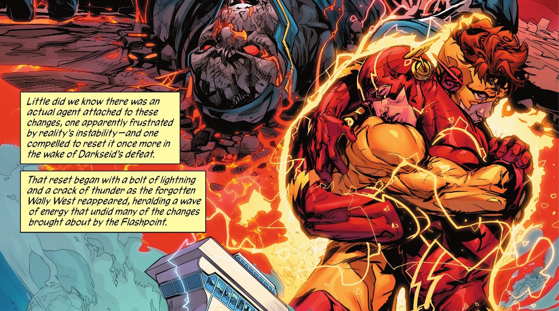 Barry Allen's documentation of the history of the DC Universe reaches the present day, beginning with the world-changing events of Flashpoint. Heroes face new threats like Perpetua and the Batman Who Laughs, and the next generation of heroes, like Jon Kent, Wallace West, and Jackson Hyde, begin to emerge from the ashes of crisis-level destruction. All leads to Darkseid's death and a glimpse at what's to come in the future. You won't want to miss this final installment!