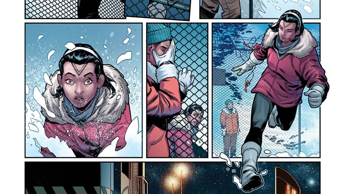 Amka Aliyak is a teenager hailing from Pangnirtung, Nunavut who first appeared infiltrating a mysterious facility near her community in the opening scene of Champions #19, kicking off the book's latest storyline. By Champions #21, in the superhero guise of Snowguard, Amka will be a full-fledged member of the Champions. Her superpowers are fueled by an Inuit force called Sila, and allow her to shapeshift and gain animal abilities. Snowguard was created by Jim Zub and designed by Sean Izaake, and to keep things authentic, Zub consulted with Nyla Innuksuk.