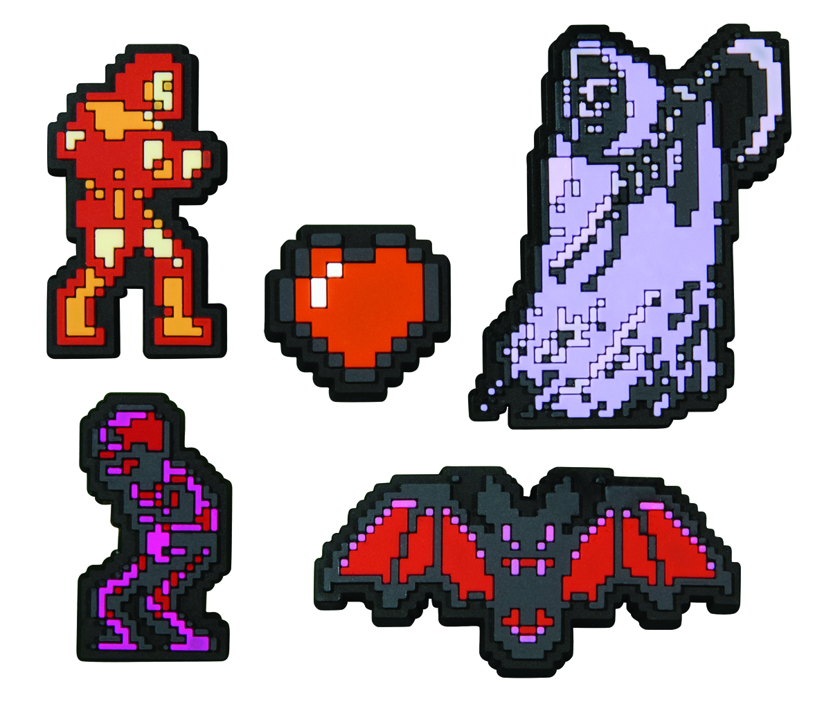 5-piece pin set sculpted in a stylized 8-bit design.