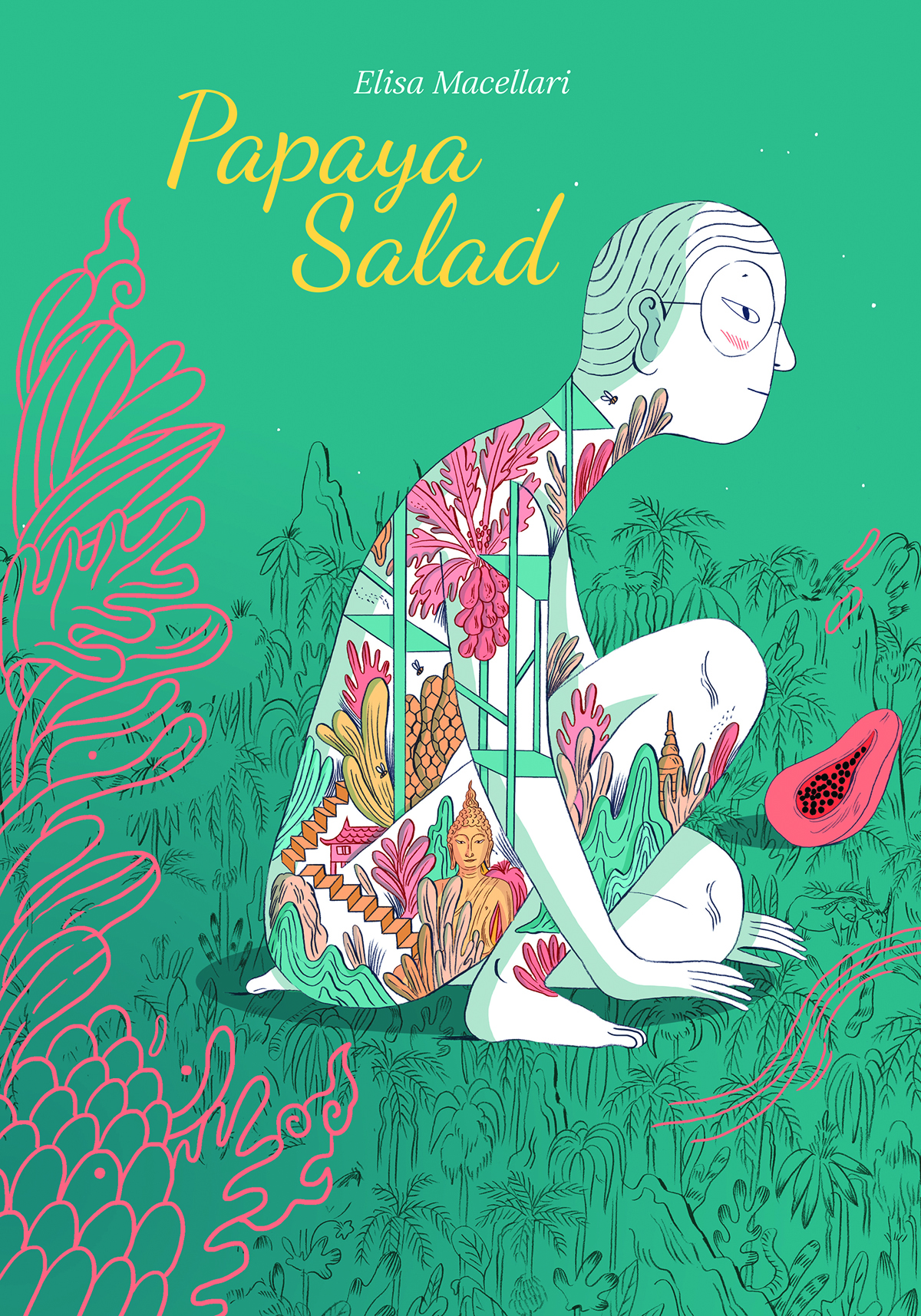 The debut graphic novel from Thai-Italian illustrator Elisa Macellari, Papaya Salad tells the story of her great-uncle Sompong who found himself in Europe on military scholarship on the eve of World War II. A gentle and resolute man in love with books and languages, in search of his place in the world, Sompong chronicles his life during the war and falling for his wife, finding humor and joy even as the world changes irrevocably around him.