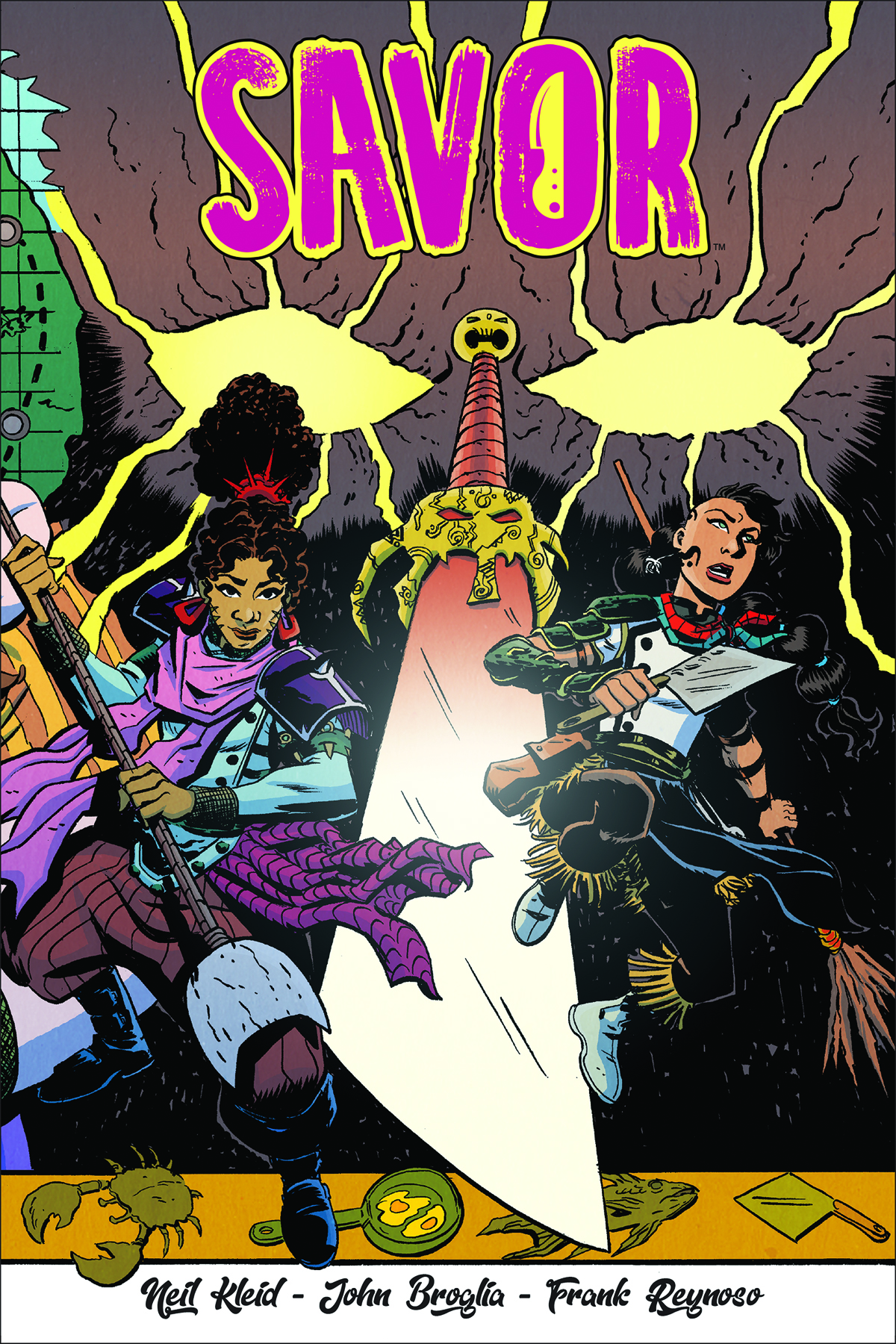 Discovering a band of demon cooks has captured her island home, warrior chef Savor Batonnet must undertake her very first quest as a newly minted hero! But being called a "hero" and possessing a handful of skills all the ingredients Savor needs to face five deadly restaurants, build the ultimate knife, save both her parents and the woman she loves? By creators Neil Kleid (Brownsville, Kings and Canvas, Powers: The Secret History of Deena Pilgrim), John Broglia (God Complex, Zombie-Sama) and Frank Reynoso (Kings and Canvas, The Sweetness).