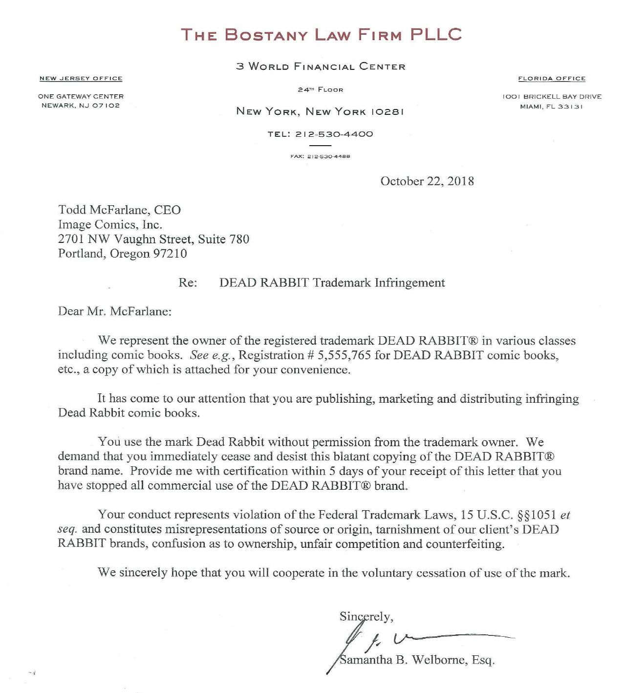 And when Image's lawyer asked for more time to respond, they requested the planned second issue not be published. However, Dead Rabbit #2 was published on November 7th.