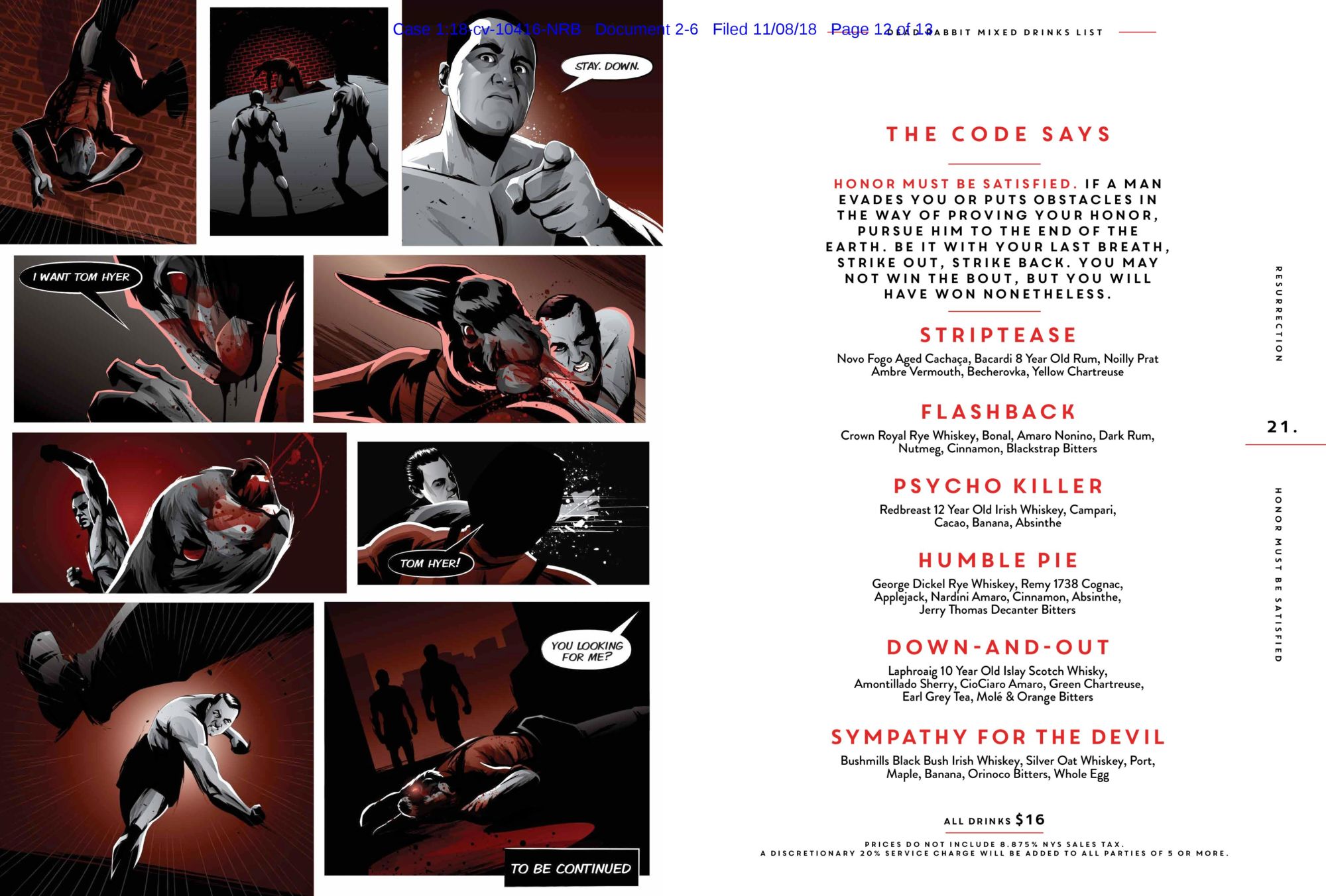 It is also notable that this occurred after the New York bar's latest Dead Rabbit publication, The Dead Rabbit Mixology & Mayhem: The Story of John Morrissey and the World's Best Cocktail Menu. Esquire Magazine ran a review of it, describing it as a cocktail book but also a bloody, brilliant graphic novel.