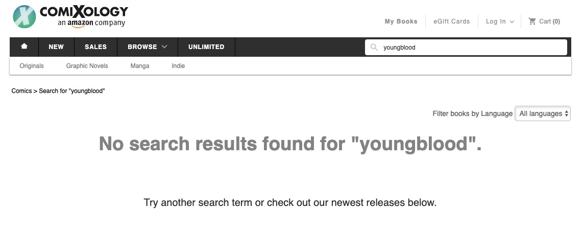 Back issues of Youngblood are no longer available for purchase on digital service ComiXology: