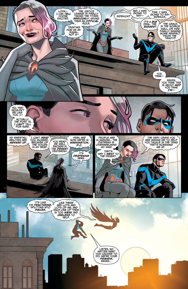 In Titans #36, the Titans have just one issue to save all of reality from Mother Blood, as this is the final issue of the series. And with most of the Titans otherwise occupied, it's up to the newly reconstituted Raven to save the day, as we see in this preview of the issue…