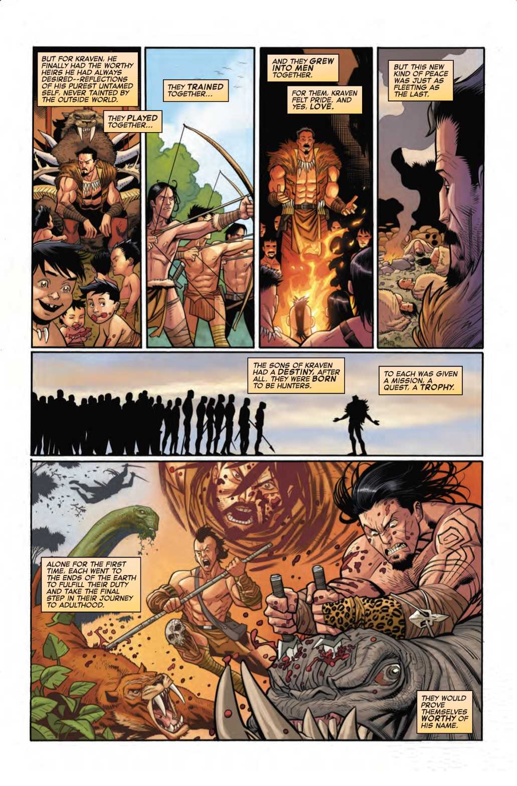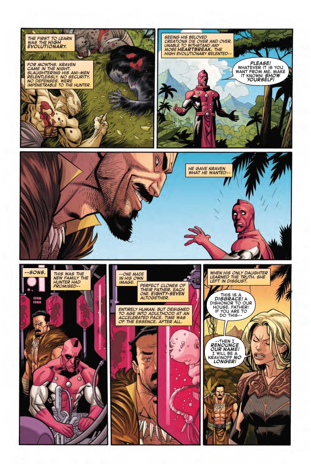 But if you think that's just typical Marvel excess, you might want to consider that there's actually a good reason the story needs so much space. Because in this preview of next week's Amazing Spider-Man #16, Kraven adds a few new members to his family. 87 of them in fact, all clones of himself, created by the High Evolutionary to age at an accelerated rate so that Kraven can quickly raise them into men and turn them into Hunters.