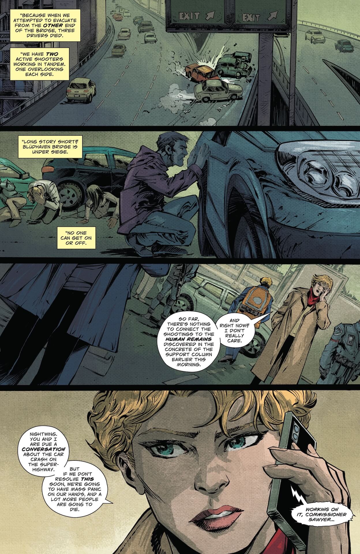 Dick Grayson's haunted by highway carnage in Nightwing #137 as Bludhaven Bridge becomes a deadly standoff zone. Can Batman help?