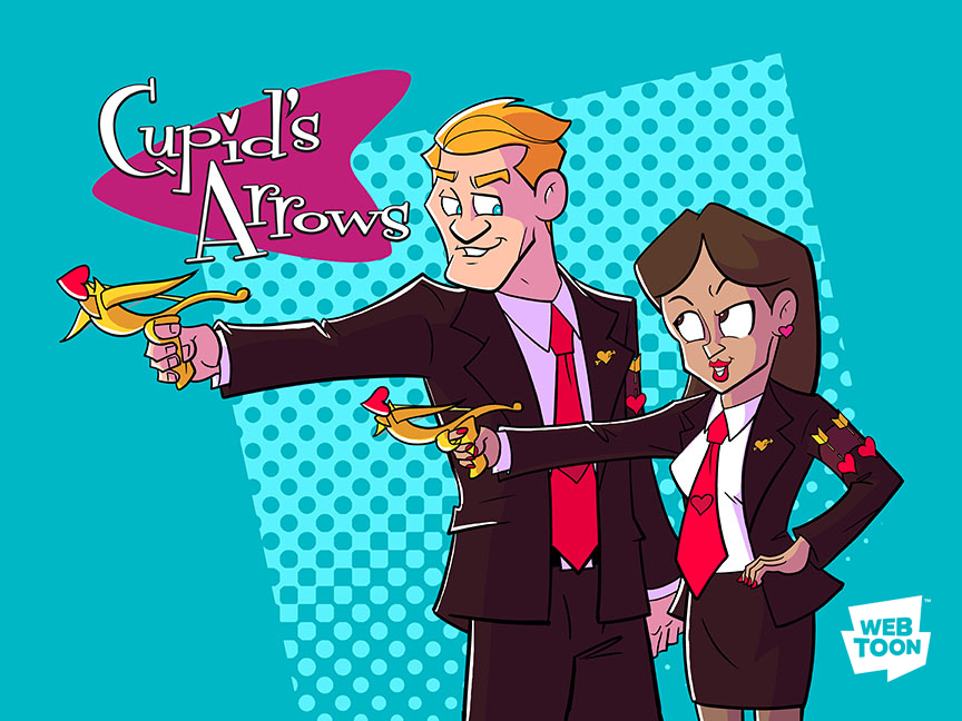 Cupid's Arrows follows Rick and Lora, a team of Arrows who work for Cupid, the god of love, and attempt to execute the wishes of The Book of Love, which gives the details on which couples will get together for a legendary love story. They've received their newest mission and must work together to bring about the perfect and memorable moment, assuring a lasting start to their couple's relationship. However, even after working together for hundreds of years, they banter and bicker like brother and sister to cover the feelings they have for each other–will these Arrows finally realize they are more than just friends?