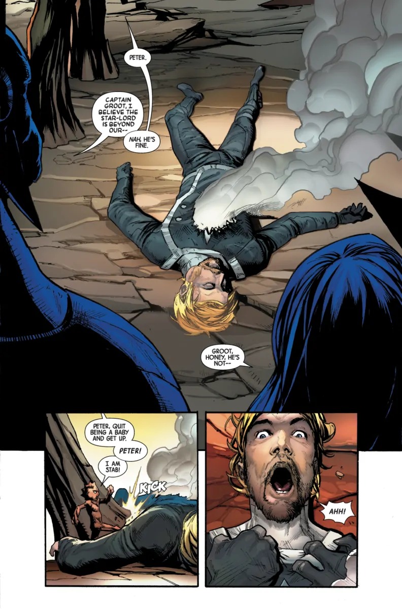 It seems like no one stays dead anymore in the Marvel Universe. In the first issue of War of the Realms, Marvel killed off both Loki and Odin, but then they immediately announced that Loki would star in a new ongoing series, while Odin was back the next issue. So when Star-Lord was apparently killed in the last issue of Guardians of the Galaxy, it was only a matter of time before he came back. But did it have to be the very next issue? See Star-Lord survive in this preview of Guardians of the Galaxy #5…