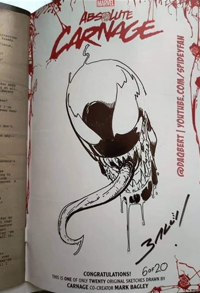 Earlier this week, Bleeding Cool reported on four of the Mark Bagley Absolute Carnage #1 inside cover sketches. Well, someone is trying to sell theirs on eBay with an opening bid of $4000, a fifth revealed inside cover sketch number 5.