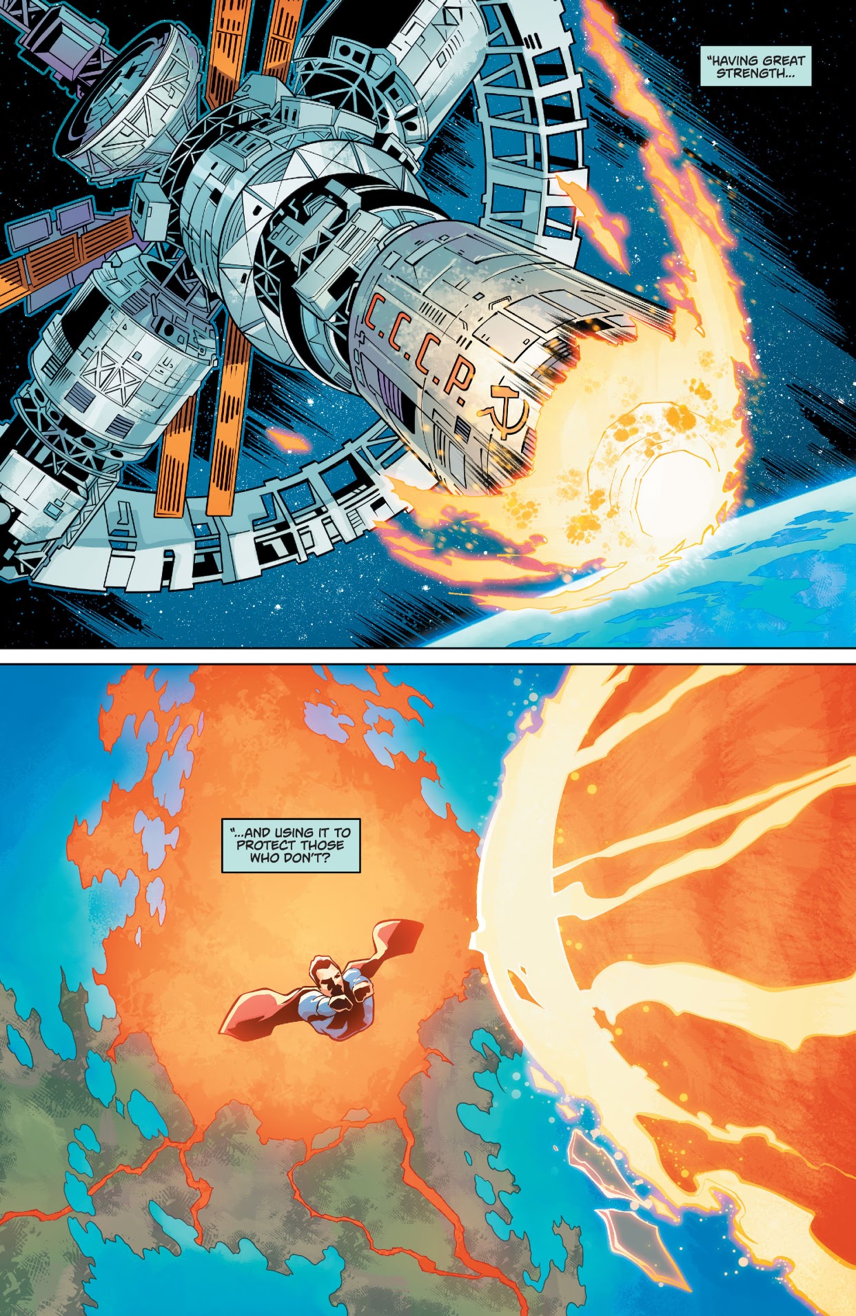 The 25-page comic was written by Christos Cage (known best for his work with Dan Slott on Spider-Man, writing Buffy The Vampire Slayer Seasons 10 through 12, Daredevil on Netflix, and more comics than can be named right now), and drawn by Joe Bennett (years before his current work on Immortal Hulk), the comic is a fantastic tie-in comic by two great creators, that also has some great Easter Eggs and references. (Such as the Russian writing most commonly seen on Rocket Red throughout Justice League International, a great take on the "Look up in the sky" cliche, and perhaps Raven for the DCEU?)