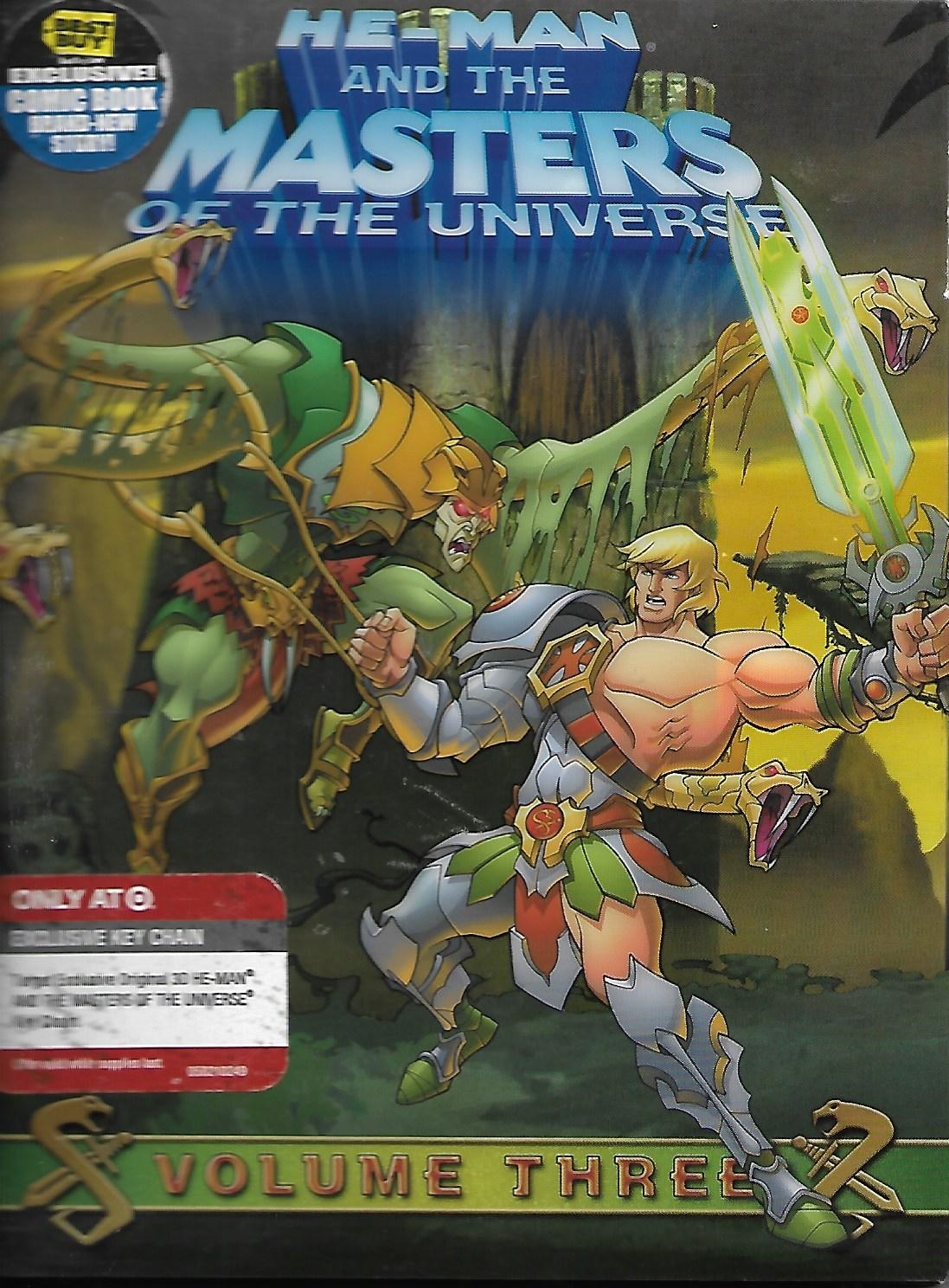 In 2005 He-Man returned again, this time to DVD as BCI Eclipse brought the original Filmation series to DVD, followed by She-Ra Princess of Power, and then the New Adventures of He-Man. Each box set had extensive artwork throughout by Emiliano Santalucia, and exclusive collectible art cards by a wide range of comic book artists, including Bruce Timm and Adam Hughes, and extensive documentaries produced by Andy Mangels. Then in 2007 BCI Eclipse brought the He-Man and the Masters of the Universe 2002 series to DVD, with some small changes. The box-sets were a bit slimmer, still with extensive artwork throughout by Emiliano Santalucia, and exclusive art cards still included, but now the slimmer sets were designed to fit in a larger Best Buy exclusive box, issued with the first set sold at Best Buy. 2007 saw store exclusives for each Masters of the Universe 2002 set (a now common practice), with each getting a Target exclusive and a Best Buy exclusive. For the third set, Target included an exclusive key chain. However, Best Buy got the chance to produce a much more desirable exclusive, a comic book ashcan sized adaptation of the un-produced 40th episode, titled "Captured."