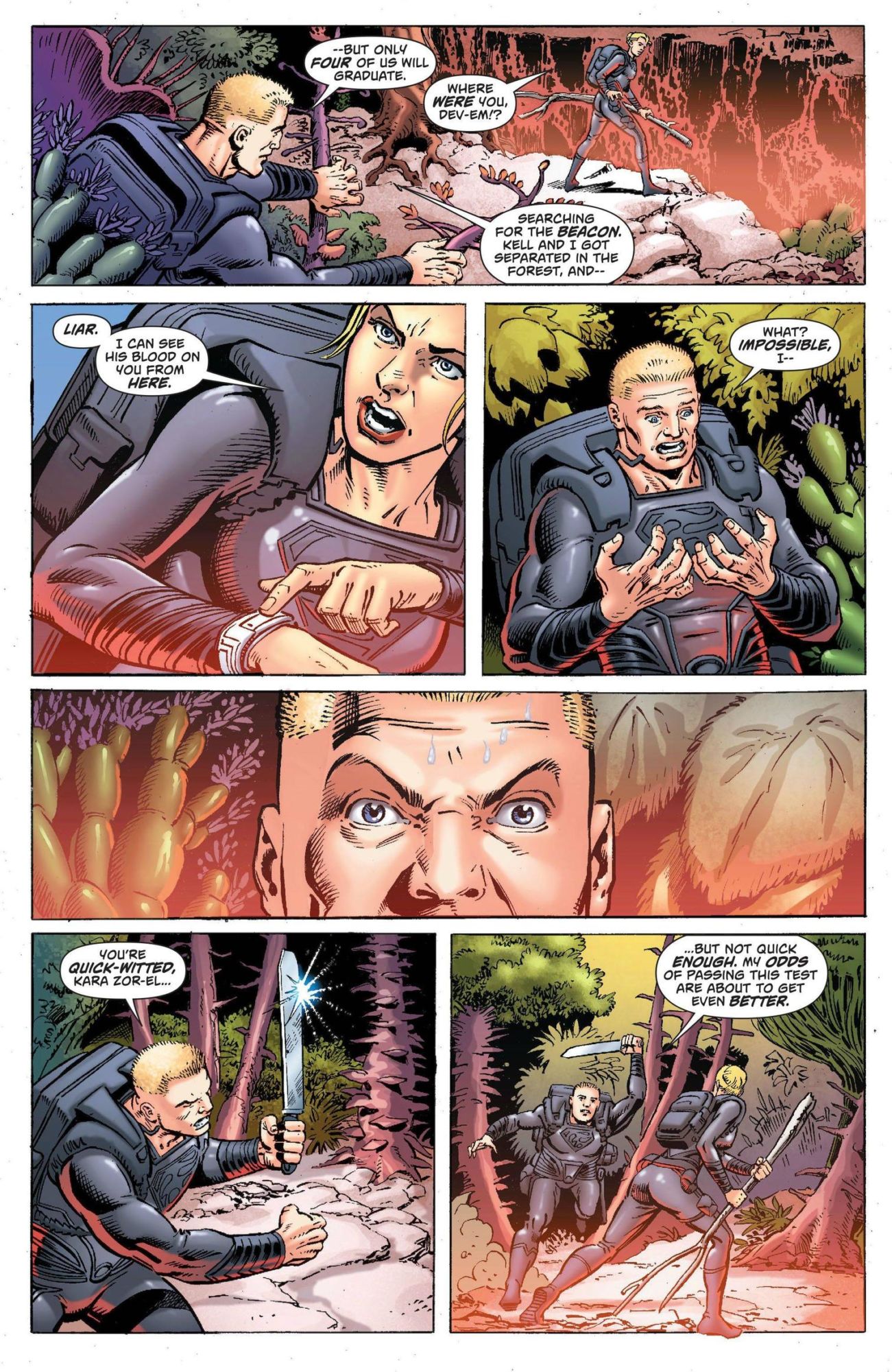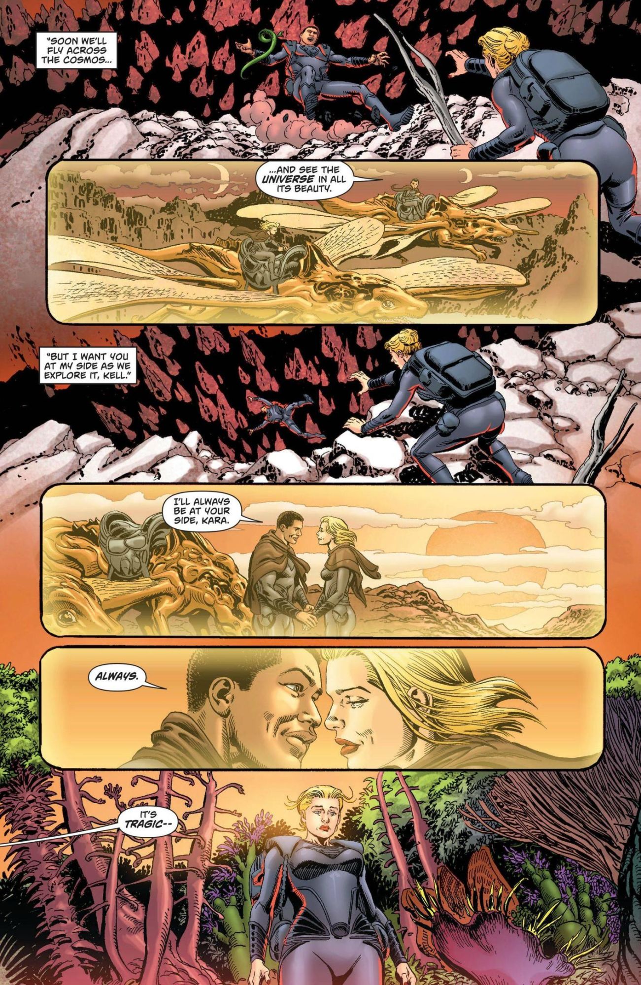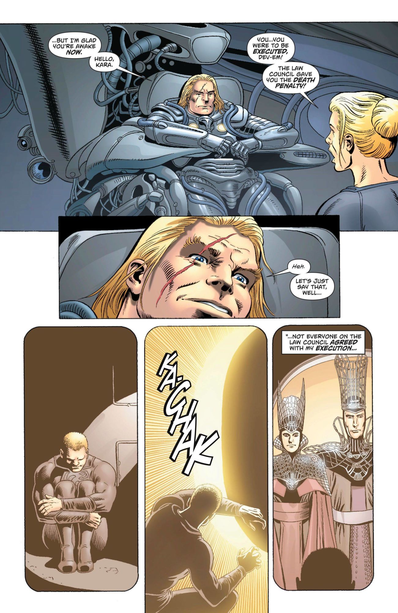 The comic focuses on Krypton of 1000 years ago, as Kara Zor-El, who along with fellow pilots and explorers are undergoing the last test required by the Kryptonian Council before she and the others can become official explorers. However, the test results in the first murder in over 1000 years on Krypton as Dev-Em causes Kell-Ur, Kara's lover, to die in an accident, trying to gain Kara for himself. Dev-Em's obsession causes the Kryptonian Council to deliberate for weeks, deciding on the murderer's fate.
