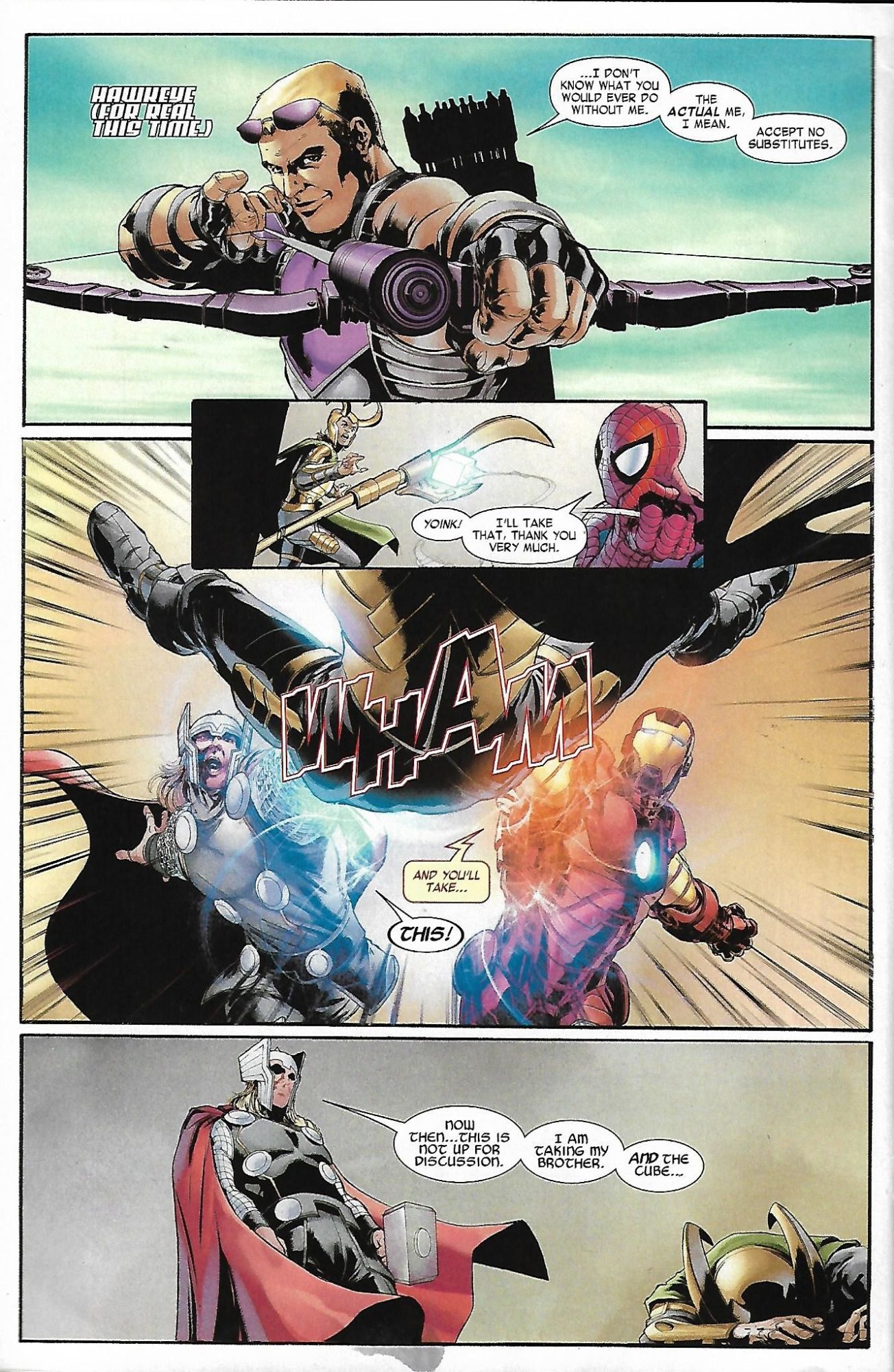 Showing up to investigate all the damage to Avengers Tower, Black Widow and Hawkeye arrive, but Hawkeye is not who he appears to be as Loki gains the Cosmic Cube!