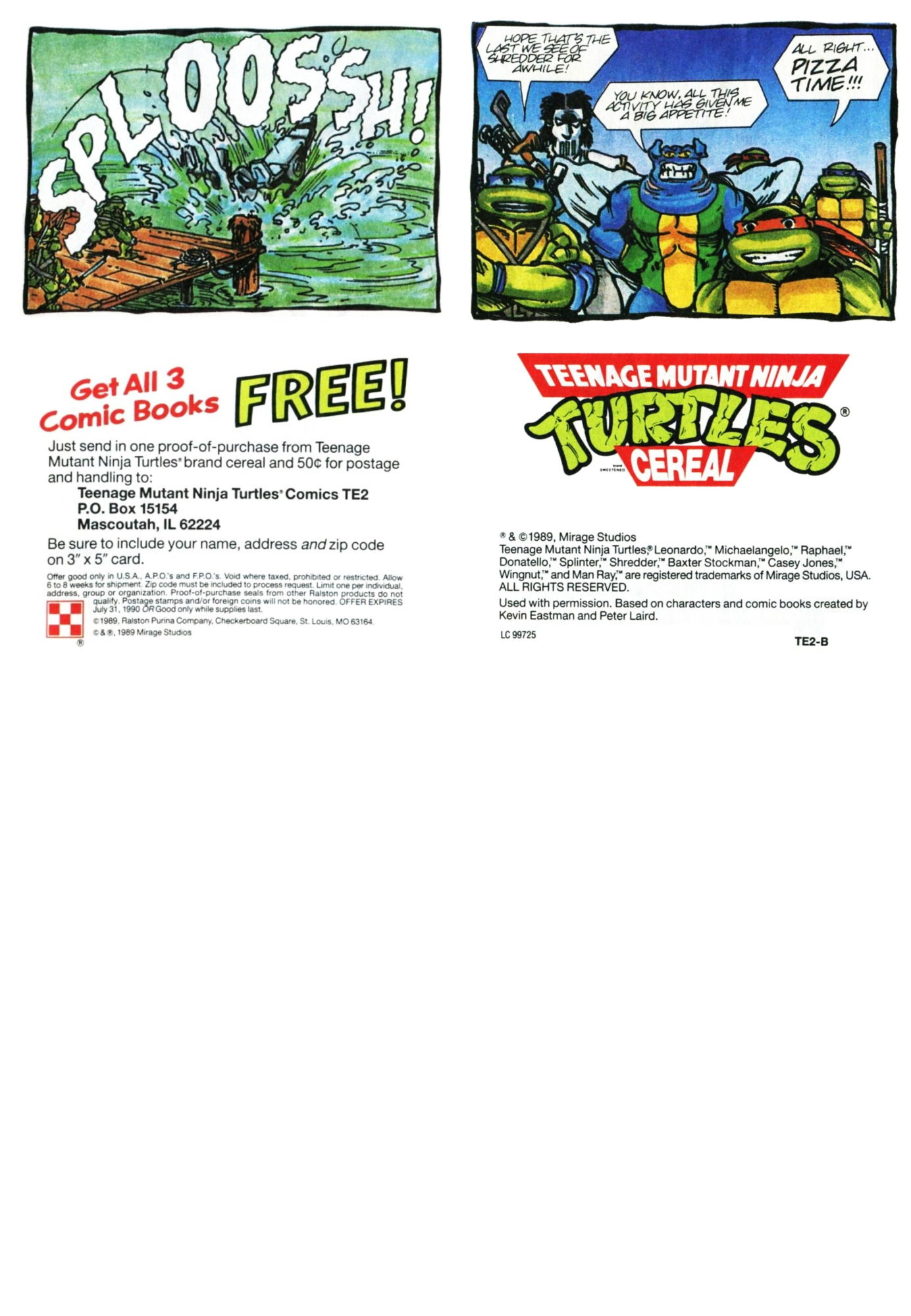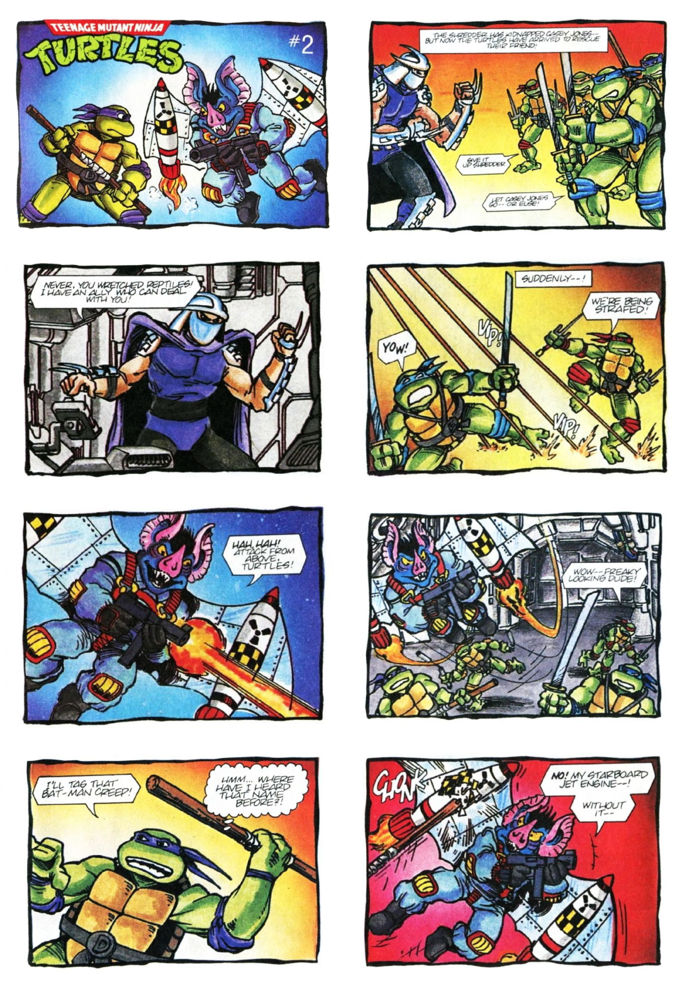 Much like General Mills, and other cereal brands, Ralston did a promotion involving comic books in the TMNT cereal. Three promotional comics were produced, with each numbered, and telling one continual story over 17 pages for each comic. However, unlike certain cereal/comic promotions, the TMNT one was much easier because you only had to buy one cereal. Once you had one comic, there was information inside telling you how to order a set so you could have all three for 50 cents and one proof of purchase.