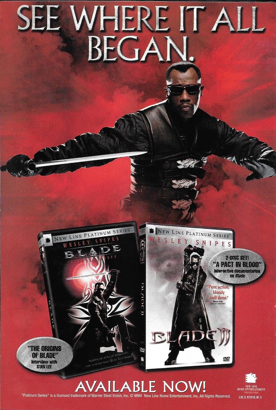 The book was published by Marvel Comics but advertised DC movies inside. Not too surprising considered New Line made the Blade Trilogy. Still, in 2020 it is interesting to remember a time where Warner Bros. owned the company that was responsible for the most successful Marvel movies of the time.