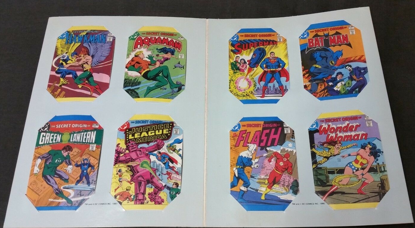 The culmination of candy and DC comics was this unique home for these small comics, Leaf's DC Super Heroes Collector Album, a mail-order keepsake that would "save and protect your Secret Origin Series" for only $1.50, by check or money order.