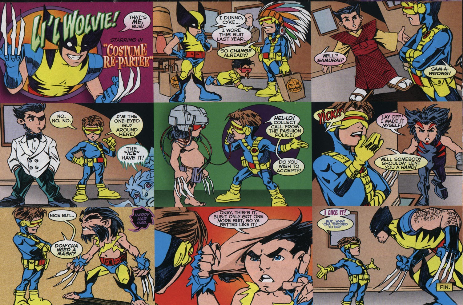 Longshot, Dazzler, and the X-Babies (newer versions who had just debuted in X-Men (Volume 2) #46 in November 1995) work to track down Wolverine and help him win … by losing.
