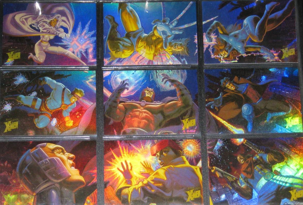 However, Fleer asked that each part of the page, divided on the cards into nine parts, has a unique character or action on it and as many Marvel characters as possible. To say this was a challenge for Mark Buckingham is an understatement, but he did it (mostly), leaving the entire comic a very, very busy affair. The cards are beautifully painted, but the backs of the cards, in addition to having the comic story on them, have little blurbs denoting who is on the front, a quick statement about the character, and first appearance. It leaves the backs of the cards just chock full of too much content.