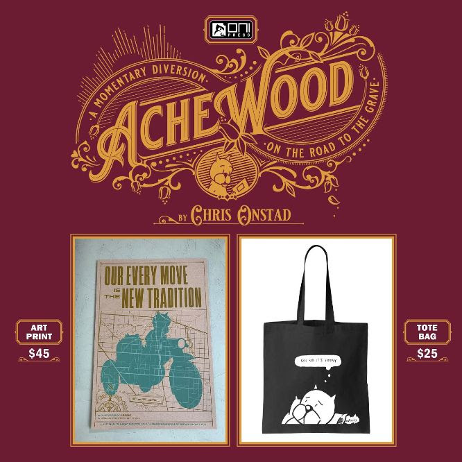 "While the decision not to attend was difficult for many reasons, one of our first considerations was supporting the creators and books we had planned to promote there" says Oni Press publisher, James Lucas Jones. "We realize many of our creators depend on convention income, and want to do our part to help where we can through sales of their books and merchandise. Additionally, we want to bring as much of the convention experience to fans as possible, despite our lack of a presence on the show floor."Oni Press unveils multiple exclusive items available now in limited quantities, exclusively through the Oni Press #ECCC2020 Pop Up Store, including the first items in an all-new merchandise partnership with Achewood creator Chris Onstad.