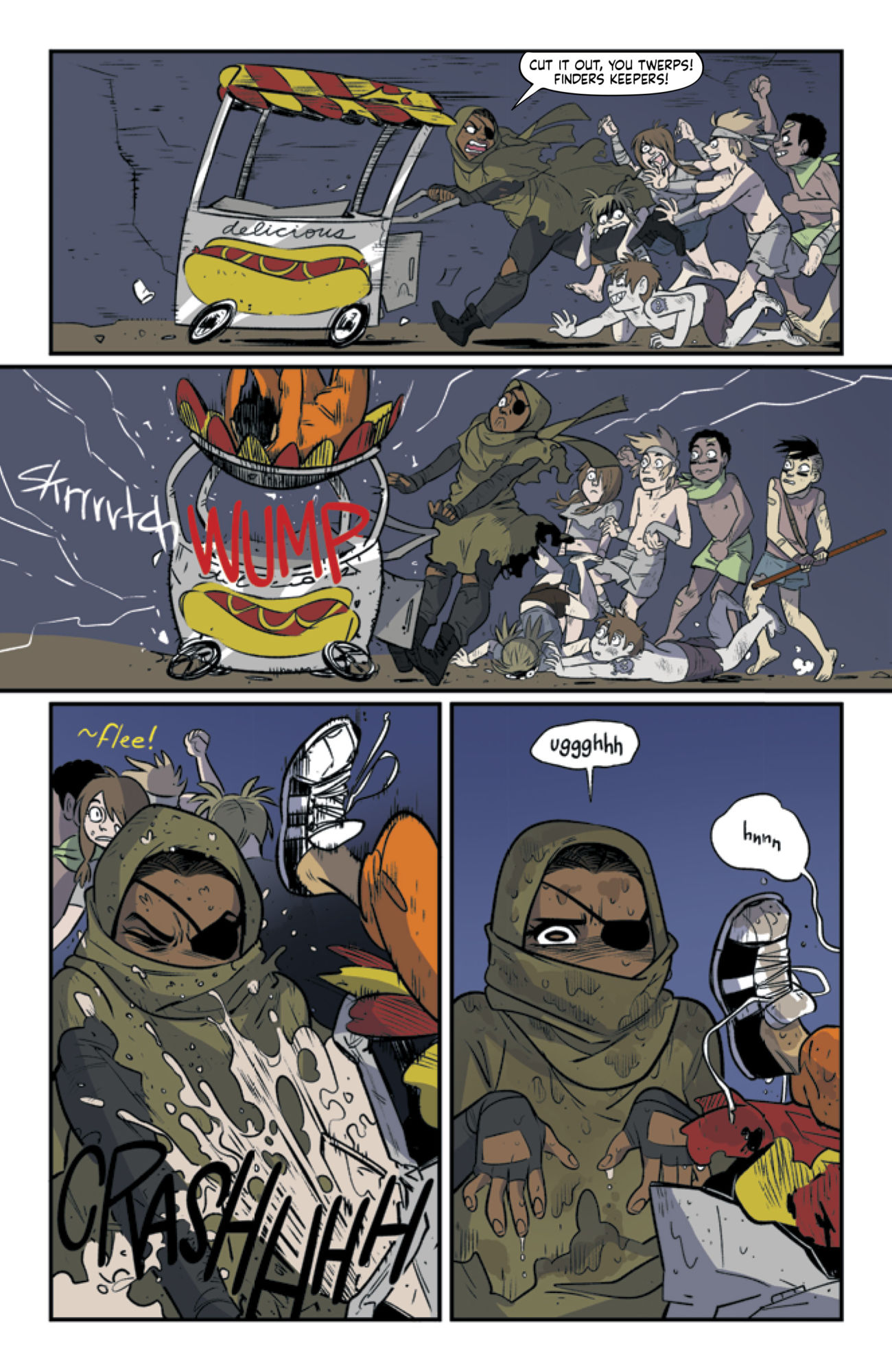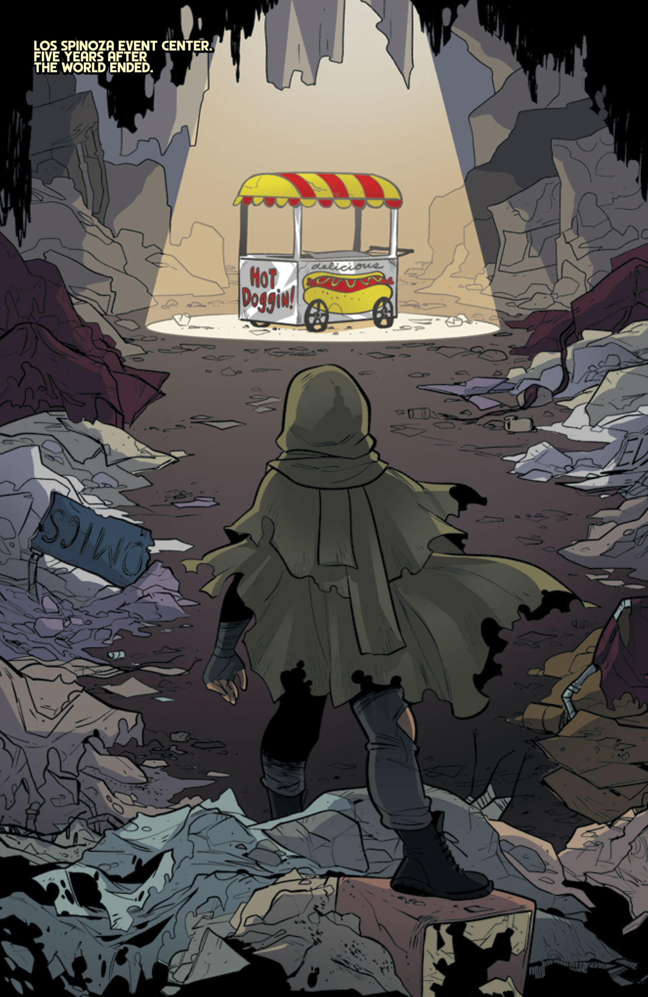 Page Count: 32Dez and Victor haven't seen each other since the world ended five years ago, leaving Dez trapped inside the Los Spinoza Convention Center and Victor writing articles for a post-apocalyptic newspaper about how to properly season shoelaces for human consumption. So the two have got a lot to catch up on—and when Dez learns the world outside the convention center isn't infested with radioactive zombies, she's determined to get not just herself and her intern out, but all the other imprisoned con-goers.