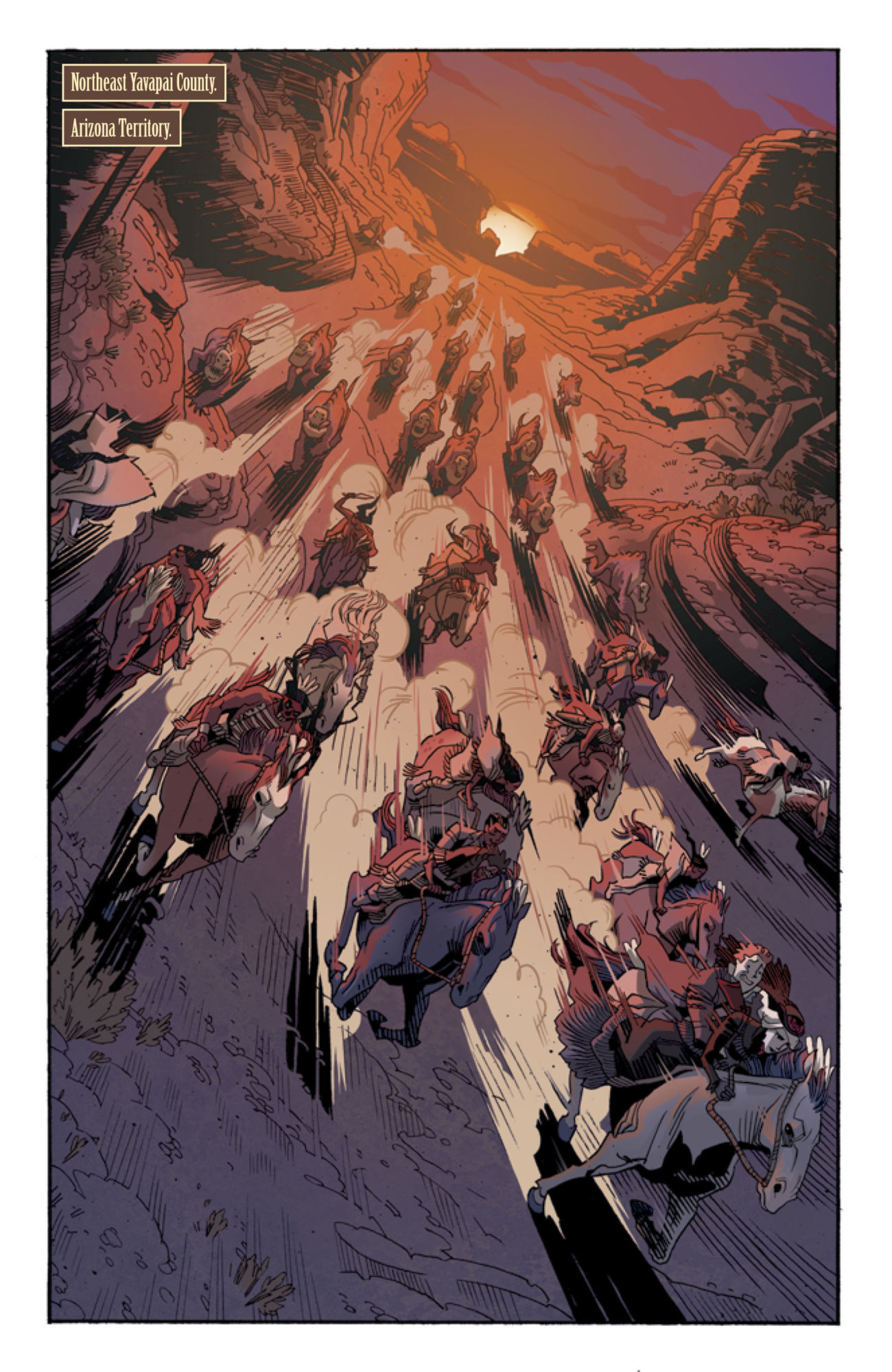Page Count: 32Beset by the Hunter's minions, Henry, Abigail, and the Buzzard Clan flee through the Crossroads. Isabelle and Ghost Eyes have allied with the Black Star Rangers to take the fight to the Hunter. A powerful beast makes its appearance, but will he help our heroes… or kill them?