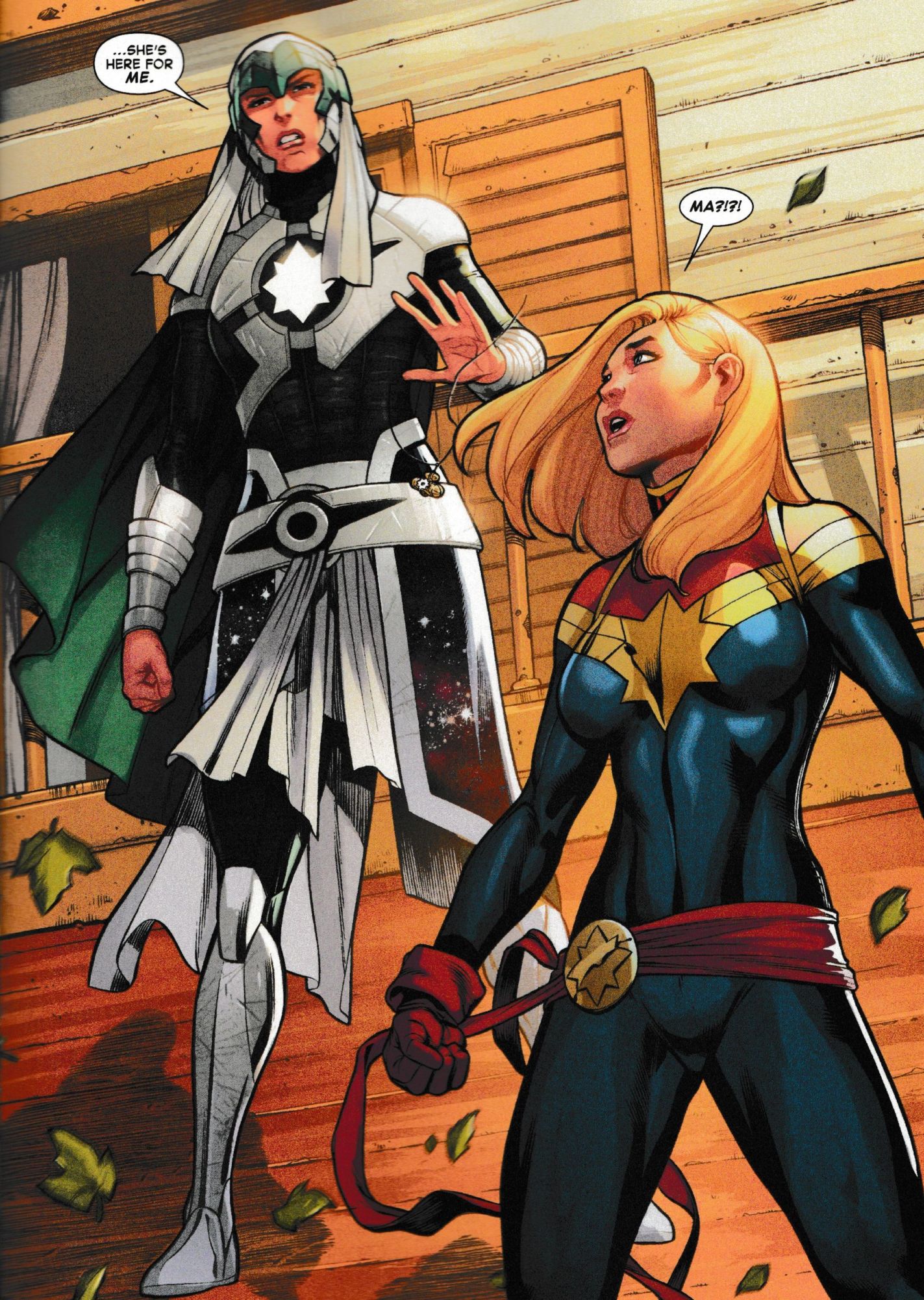 But there was a device in her father's effects that seems to have summoned a Kree Warrior, in Life Of Captain Marvel #2, now descending upon their home. Which may suggest another origin for Carol's powers, and all starts to sound rather Star-Lordish.