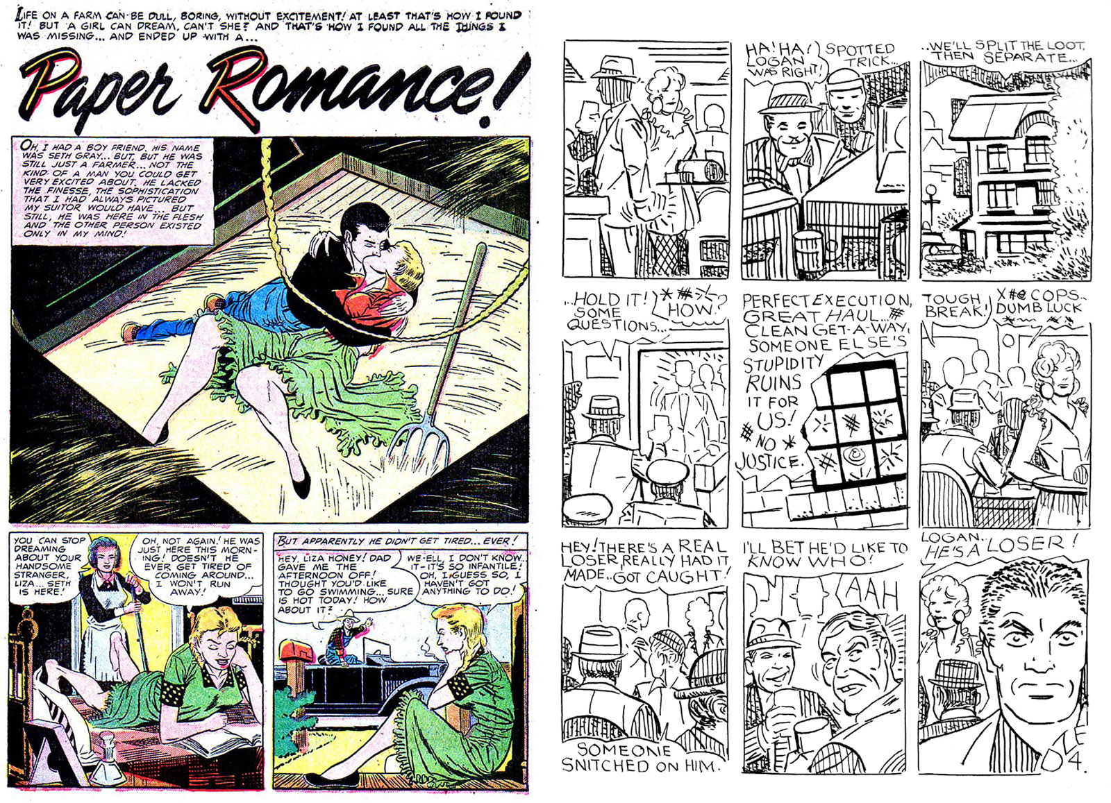 The first is the first page of Paper Romance, published in 1953 in Daring Romance, thought to be the first published Steve Ditko comic book story.