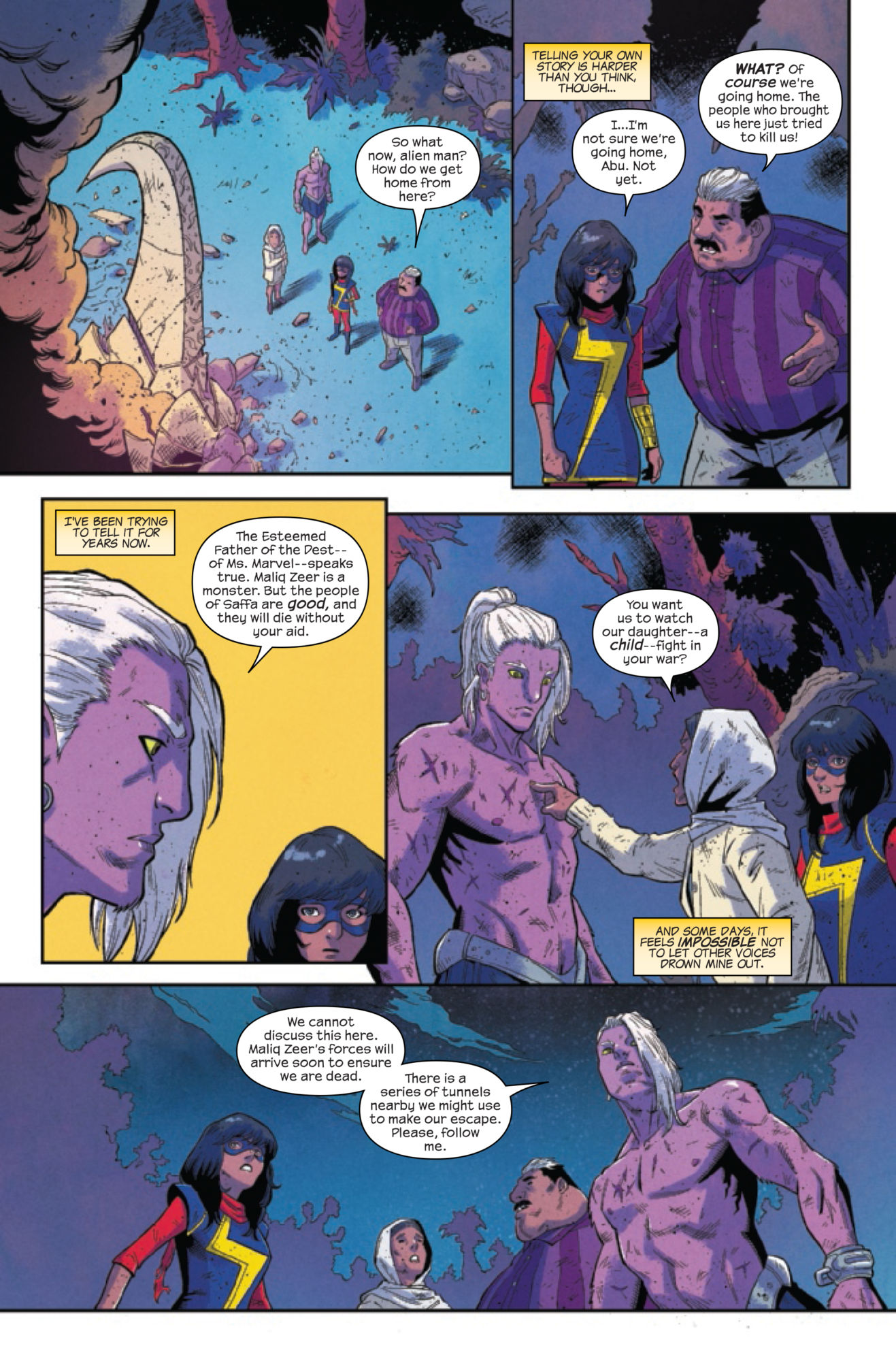 In next week's Magnificent Ms. Marvel #4, the titular Ms. Marvel finds herself marooned on an alien planet after the ruler she came to help — surprise — turned out to be evil and then shot her spaceship out of the sky. Which, for Ms. Marvel's parents, who decided to come along on this trip after her dad found out about her secret identity, is the end of it. Time to go home to Jersey City!