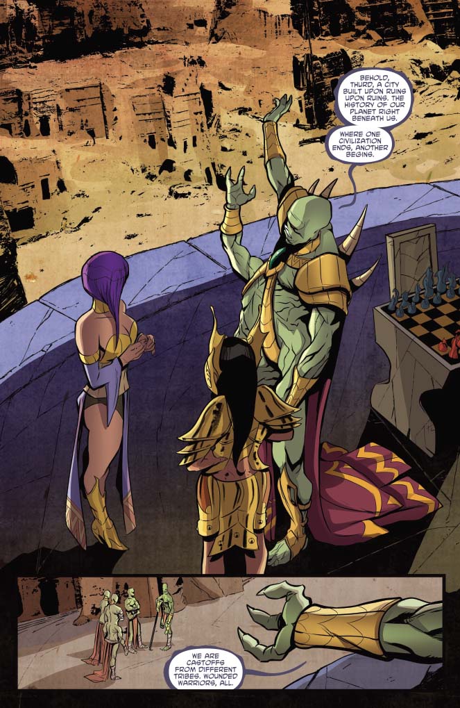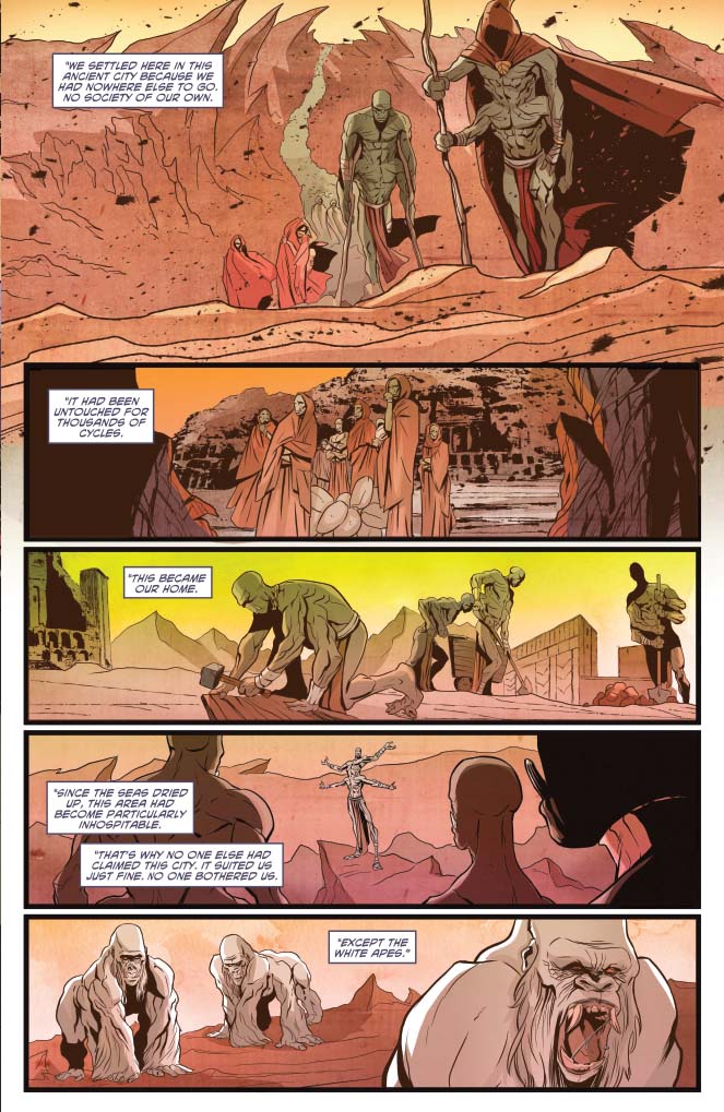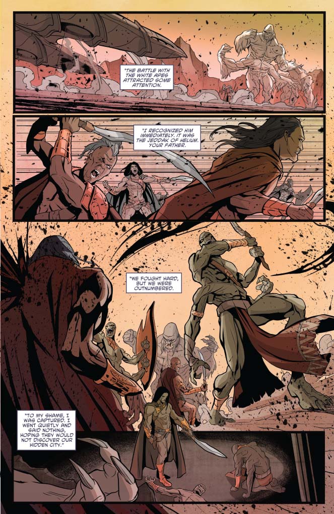 Nars leads Sajad, Dejah and Kajas through the city. And on page 19, we have a splash page with Tharks working.