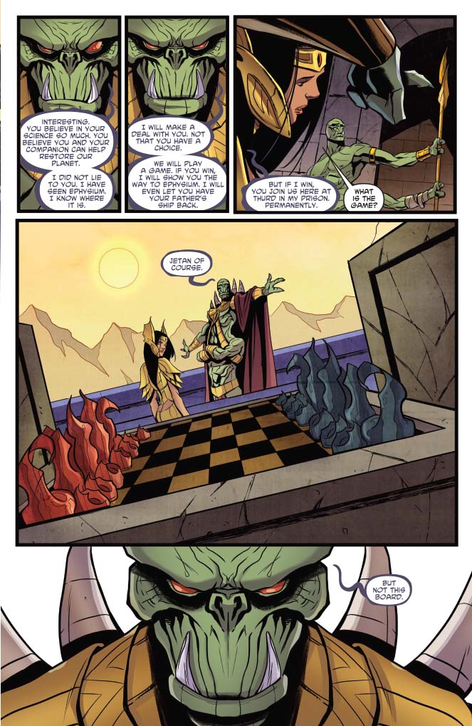 The Princess of Mars faces off against the Jeddak of Thurd in a deadly game of Jetan in order to win her team back.