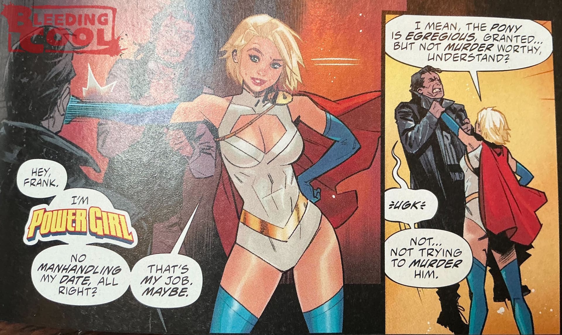 Which is a bit much, even for Power Girl, as a way to get out of this. She has some morals after all…