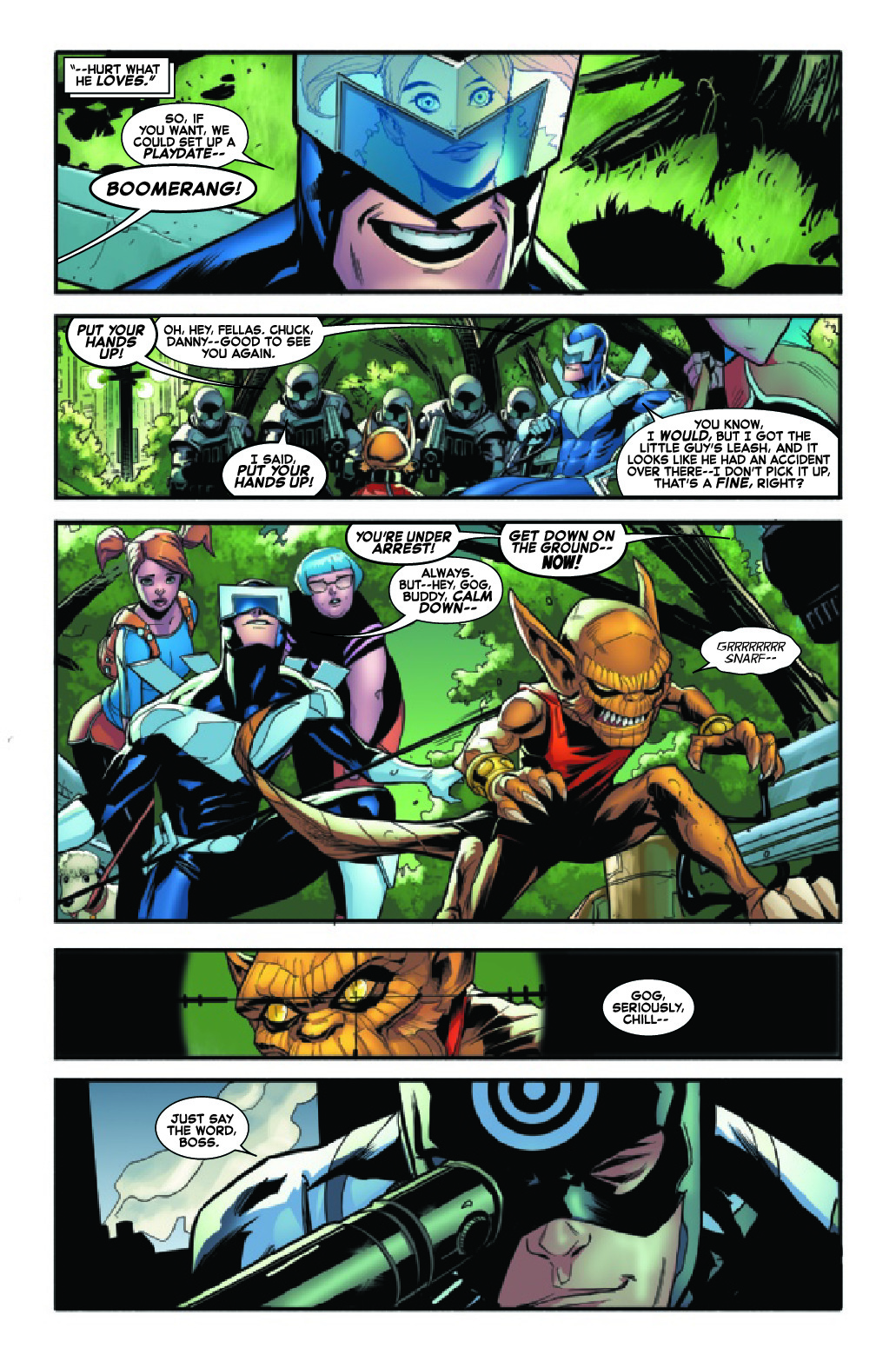 For a guy who goes through a lot of trouble to keep his identity a secret in order to protect those he loves (and who gets the occasional do-over on shockingly revealing that identity to the world), Peter Parker seems to have an unusually high number of people he cares about killed by his enemies. And next week in Amazing Spider-Man #62, it looks like it could happen again, at least according to the preview and solicit. At the Kingpin's behest, while Peter is galavanting around town in his costume, Bullseye has Spider-Man and Boomerang's pet, the tiny and docile Gog, in the sights of his rifle. Is this the end of Gog? Or does Bullseye have another target in mind… like a certain inhibitor collar? Well, maybe another of Spider-Man's friends or family will be killed by a rampaging Gog then. However you look at it, it's clear that Spider-Man has once again forgotten his greatest lesson: with great power there must also come great responsibility.