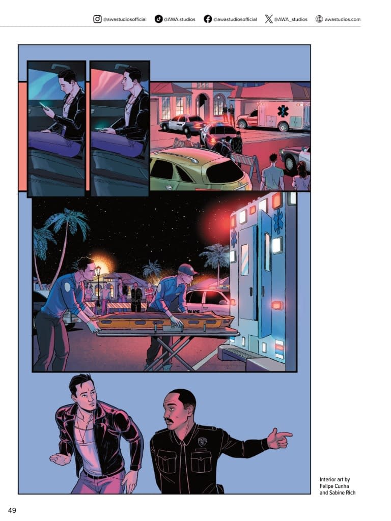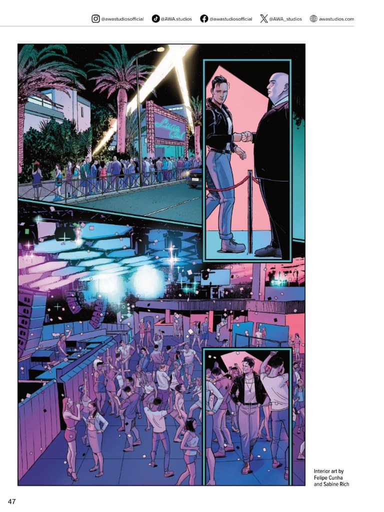 AWA Studios (Artists, Writers & Artisans) is an American independent comic book publisher founded in 2018 by industry veterans Axel Alonso (former Marvel Editor-in-Chief), Bill Jemas (former Marvel Publisher), and Jonathan F. Miller. Backed by significant investment (including from the Murdoch family's Lupa Systems), AWA aimed to blend creator-owned freedom with the potential for shared universes and multimedia adaptations, positioning itself as a creator-friendly alternative in a market dominated by Marvel and DC. Notable creators include J. Michael Straczynski, Garth Ennis, Frank Cho, Christa Faust, Mike Deodato Jr, Mark Russell, Ronda Rousey, Charlamagne Tha God, Denys Cowan, Bill Sienkiewicz and more. As of late 2025, AWA's output has slowed, leading to speculation about its future despite past acclaim and ambitious plans.