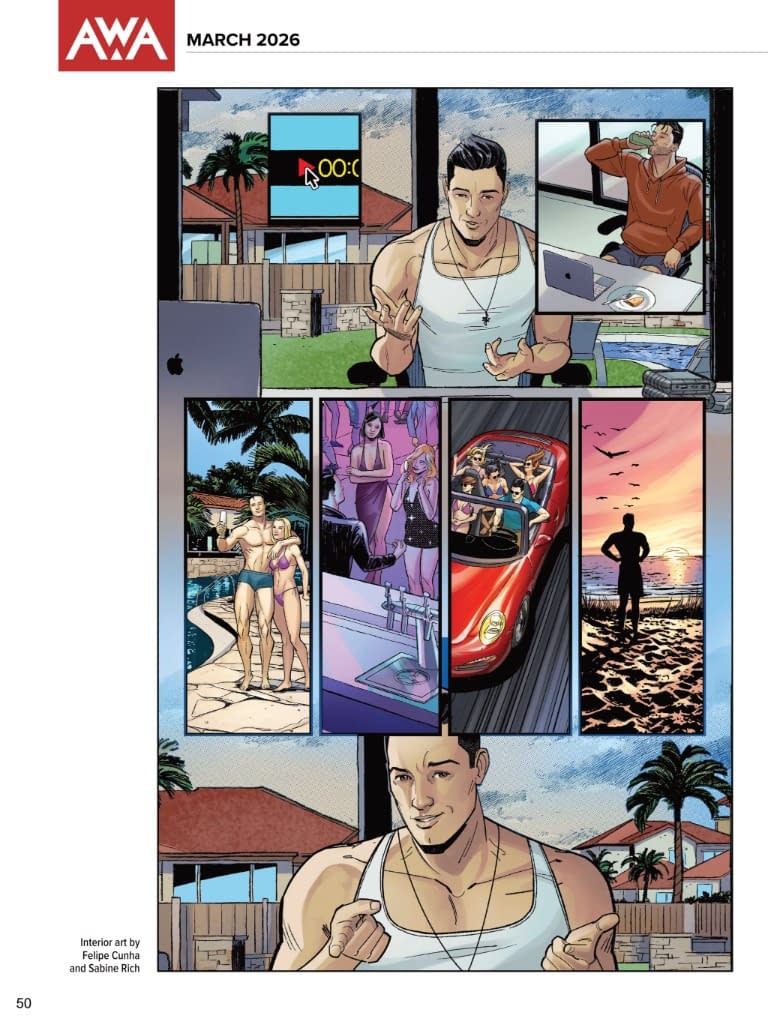 When he is not editing books for AWA or co-writing their comics with Rupert Murdoch's daughter-in-law, Kathryn Murdoch, Michael Coast is writing his own comics through AWA as well. And in AWA's full March 2026 solicits and solicitations, it's the only comic they are publishing for March 2026. Pick Up, an incel murder mystery one-shot. I'm not entirely sure it will keep all the lights on in their New York offices… but still. Thety also have something for Free Comic Book Day…