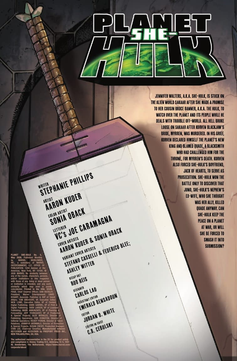 - Cover image for 75960621102900521 PLANET SHE-HULK #5 ASHLEY WITTER SHE-HULK VARIANT, by Stephanie Phillips & Aaron Kuder, in stores Wednesday, March 18, 2026 from Marvel