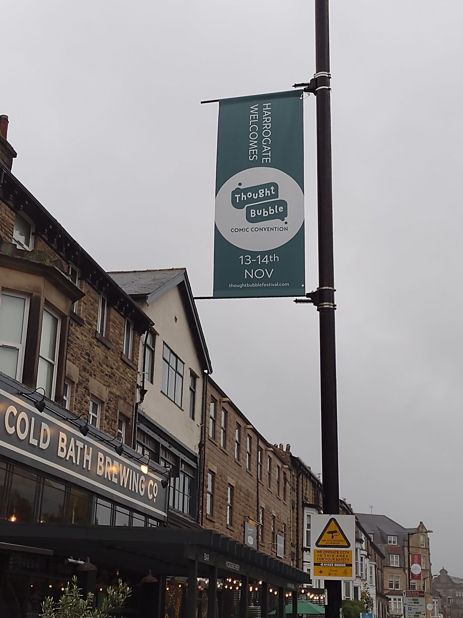 It's a grey drizzly day in Harrogate as I have arrived for the Thought Bubble Convention tomorrow. With a few hours to spare before the show kicks off, I pottered around the place to check out the local bars, restaurants and people, as well as see the convention centre as it is being set up for tomorrow's huge event. Thought Bubble is pretty much Britain's premiere comic book convention/festival, with only The Lakes to challenge it. We have been two years without TBubs, many of our favourite folk won't be making the trip – though plenty will. The Americans are jet lagged, the Brits are in the bar (I just waved at Dan Watters with a 3pm pint) and the Broken Frontier Drink And Draw will be kicking off in an hour and a half at Major Tom's. The weather is meant to improve tomorrow but tonight feels just more… British. Harrogate is bizarrely beautiful as ever, old stone buildings clashing with the modern chavvish city centre accoutrements of traffic furniture and pound shops. I have no idea what the locals think of Thought Bubble – this is only its second time here and two years apart – but this is a town of two halves. Tea rooms like Bettys and indie record dens like.., well, Den. The Majestic Gents toilets are still as much a tourist attraction as the hot baths. But now it's time for comic books of all shapes and sizes to spread themselves about like they own the place. And for me to go and ask Dan if he wants another pint… here's a little look at Harrogate on a grey day, the sunshine will come tomorrow. At least it had better bloody do. And yes, expect the usual From One Side Of The Show To The Other tomorrow when they let us all in.